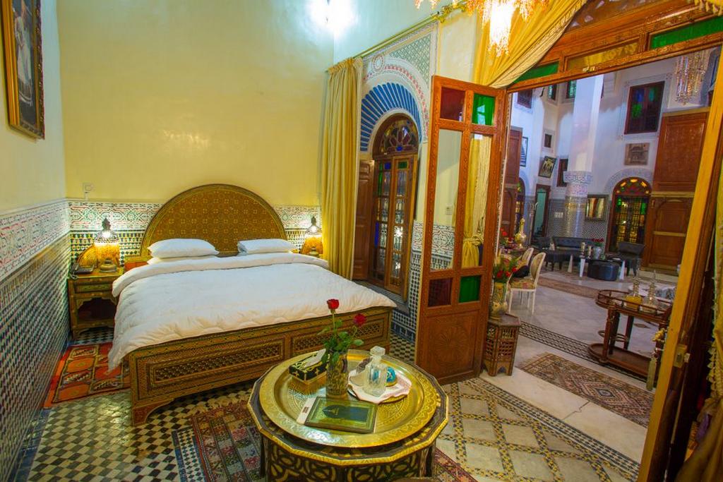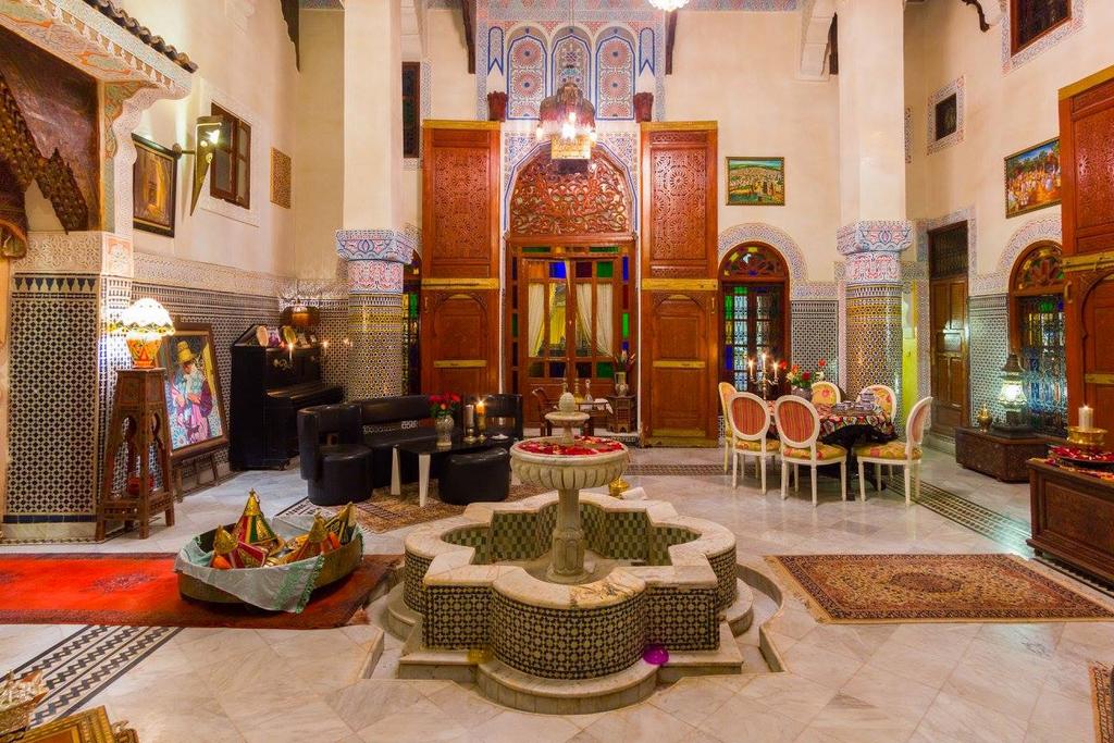 Nuit au Riad Al Firdaous (ou similaire) : au cœur du quartier de Fès el-Bali, le décor du Riad reflète le savoir-faire des artisans traditionnels de Fès : tissage, brocard, travail du cuir, des métaux et la dinanderie, du bois, poteries et zelliges... Un vrai musée s’offre à vous ! Les chambres, toutes différentes, sont climatisées et décorées dans la plus grande tradition arabo-andalouse et disposent d’une connexion Wifi. Ce palais vous promet un moment 100% zen avec un sauna, hammam et une salle de massage, gommage et soins. Le café séparé et la terrasse sur le toit seront également des endroits parfaits pour capter l’énergie de cette ville extraordinaire classée au patrimoine de l’Unesco.