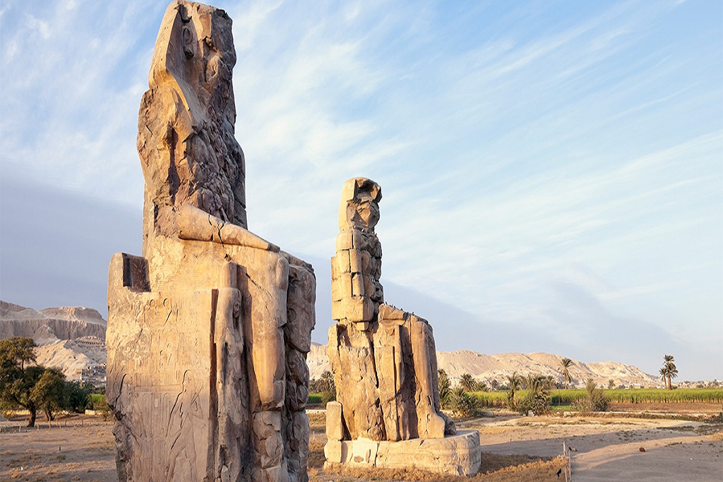 Petit déjeuner matinal. Nous vous suggérons de faire la traversée du Nil pour visiter la rive ouest, où le soleil se couche : la Cité des Morts. Visite de la vallée des Reines, du temple de Medinet Habou et des colosses de Memnon, les seuls vestiges du temple funéraire d'Aménophis III. Ces statues monolithiques de 20 m de haut se trouvaient de chaque côté de l'entrée du temple et représentaient le pharaon assis sur son trône. Continuation par la découverte de l'impressionnant temple funéraire d'Hatchepsout. Retour à bord du bateau pour le déjeuner. L'après-midi sera libre, navigation vers Esna. Passage de l'écluse d'Esna et poursuite de la navigation vers Edfou. Dîner et nuit à bord.