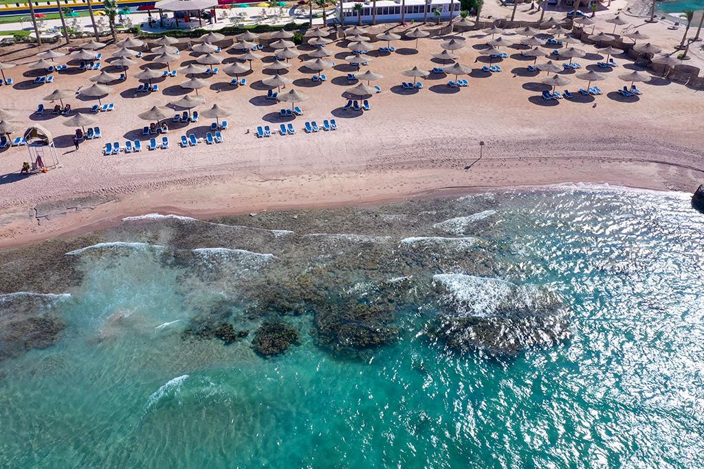 Mondialement connue pour sa mer azur aux eaux cristallines et ses montagnes désertiques, la station balnéaire d'Hurghada est la destination parfaite pour se ressourcer au soleil. Autrefois ancien village de pêcheurs, cette région offre aujourd'hui de véritables attraits, grâce à ses 40 km de côtes : à fleur d'eau, en « snorkeling » ou en plongée plus profonde, profitez des fonds marins de la mer Rouge qui comptent parmi les plus beaux du monde. C'est le lieu idéal pour des vacances animées grâce à son centre-ville, sa marina, ses nombreux bars, discothèques et restaurants dans le vieux quartier d'El Dahar mais également ses cafés traditionnels égyptiens et ses souks. Sahl Hasheesh, situé à env. 18 km au sud d'Hurghada est connue pour ses belles plages, ses eaux claires, ses stations balnéaires luxueuses et sa tranquillité, pour des vacances décontractées à la plage avec une touche de chic et de beauté naturelle. La station balnéaire s'enorgueillit d'une longue étendue de plages de sable immaculé le long de la mer Rouge où vous pourrez « farnienter » ou profiter du « snorkeling » et la plongée sous-marine dans les eaux cristallines.