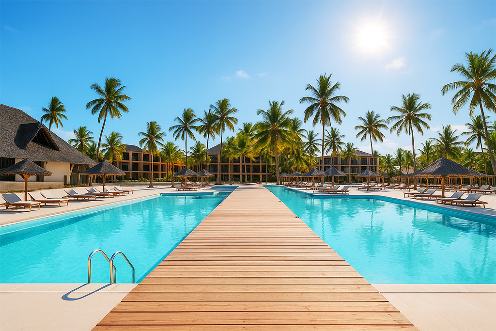 Bienvenue au Jaz Aurora Beach 5* ! Situé sur la plage de Paje, à l’est de Zanzibar, cet hôtel 5* vous accueille dans un cadre idyllique, avec des espaces modernes, design, ouverts sur la magnifique plage. Avec la formule « tout compris », dégustez les nombreuses spécialités locales et entre deux brasses, accordez-vous un rafraîchissement au bord de la plus grande piscine de Zanzibar. Son ambiance chic et décontractée vous promet un séjour balnéaire de pure détente, au cœur de l’océan Indien.