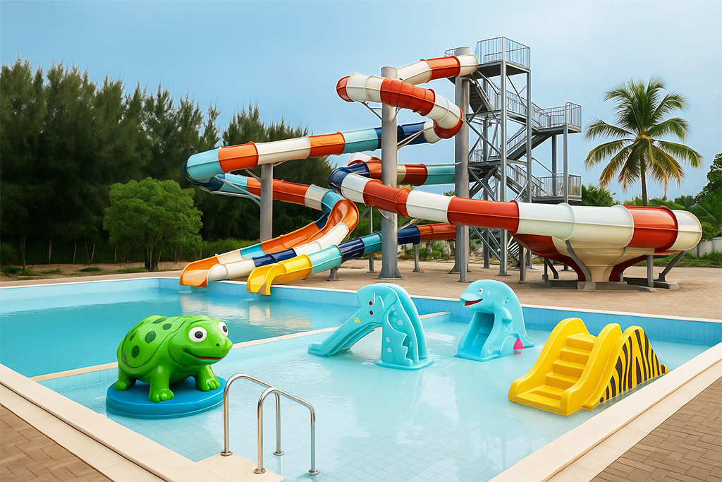 - 3 piscines extérieures dont 1 pour adulte et 1 avec des jeux aquatiques