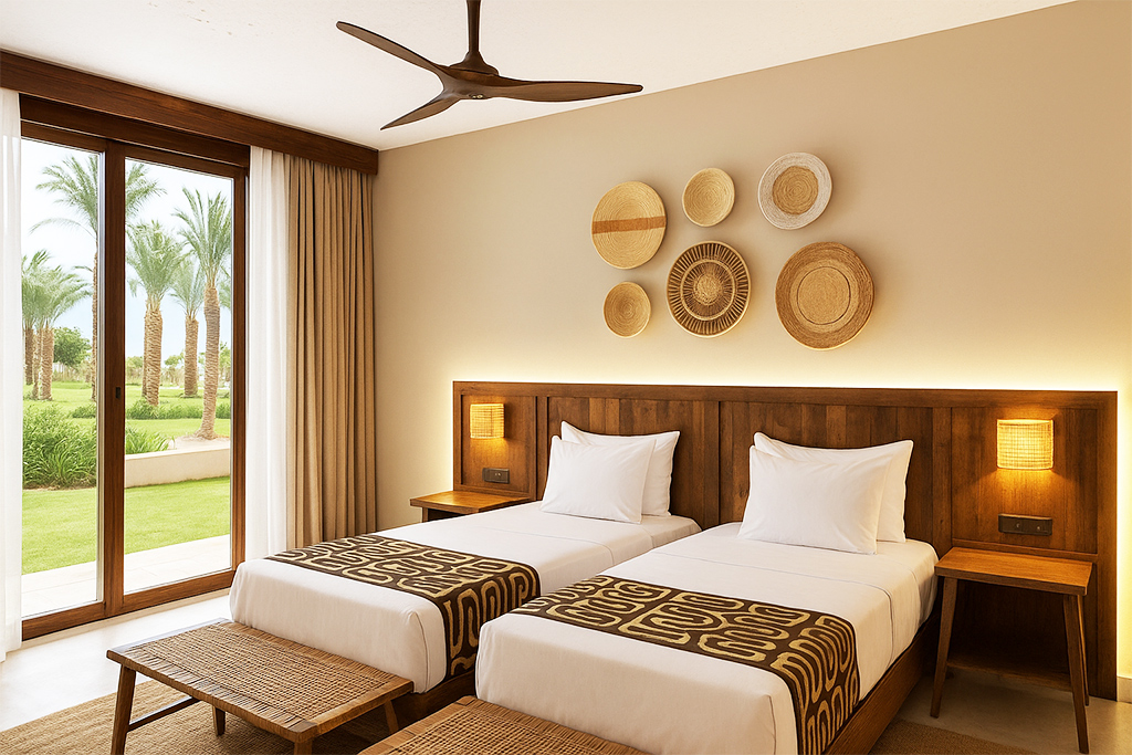 Le Jaz Aurora Beach 5* compte 320 chambres au design unique, réparties sur 2 ou 3 étages. Dans un cadre moderne, reposez-vous dans une ambiance chic et décontracté grâce à la décoration neutre avec des éléments de décoration en bois.