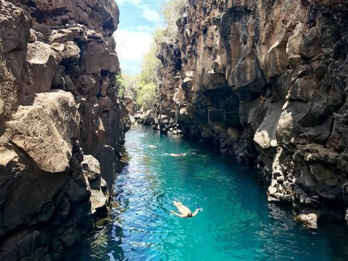 Petit-déjeuner à l’hôtel Embarquement en bateau pour aller observer des fous aux pieds bleus, des frégates, des mouettes, et autres oiseaux endémiques. Plongée avec tuba dans la baie de Franklin, où vous pourrez observer une grande variété de poissons colorés et de toutes tailles, des tortues marines, des petits requins, les requins bleus du ravin qui sont totalement inoffensifs. Vous débarquerez afin d’observer la végétation de l'île ainsi que des iguanes marins, pour poursuivre vers Las Grietas, fissures de lave, vous visiterez également les mines de sel et une piscine naturelle où les eaux salées de la mer rencontrent l'eau douce de la partie haute de l'île. Lieu idéal pour nager avec les poissons et faire du snorkeling. Déjeuner libre Après-midi libre. Dîner libre. Nuit à l’hôtel Bateau et 45min de marche – Altitude max m Services compris : ☒ Transferts ☒ Guide Accompagnateur ☒ Hébergement