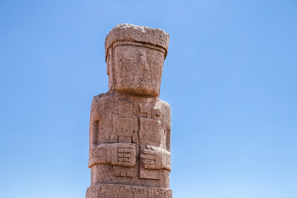 Petit-déjeuner. Départ matinal pour Desaguadero, à la frontière Pérou – Bolivie, pour les formalités douanières et la rencontre avec votre guide bolivien. Poursuite vers Tiwanaku, site archéologique majeur de la civilisation précolombienne andine. La visite débute par le musée régional pour découvrir une riche collection d’artefacts, puis se poursuit sur le site archéologique lui-même : exploration du temple de Kalasasaya avec l’emblématique Porte du Soleil, du temple semi-souterrain orné de têtes sculptées, et de la pyramide d’Akapana.