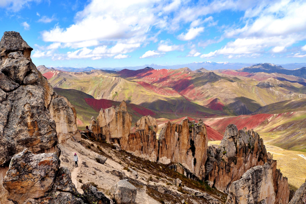 Petit-déjeuner. Départ de Llachón pour un voyage à travers les hauts plateaux andins en direction de Cuzco, le cœur de l’Empire Inca. Traversée de l’Altiplano, en passant par des localités comme Juliaca et Sicuani, offrant des paysages grandioses. Depuis Combapata, route vers la communauté de Palcoyo (4800 mètres d’altitude). Randonnée (environ 1h à 1h30 aller-retour) vers les montagnes arc-en-ciel de Palcoyo, un site moins fréquenté et accessible que Vinicunca. Le paysage minéral présente des strates de couleurs vives et une forêt de pierres naturelles.