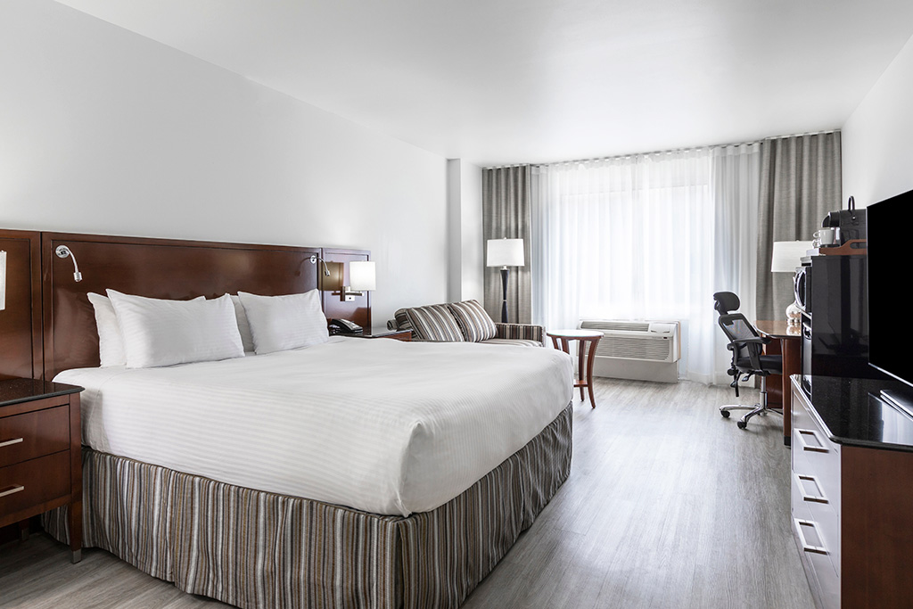 Bienvenue au Le Nouvel Hotel 4* ! Idéalement situé au cœur de Montréal, à proximité du centre-ville et des principales attractions, cet établissement vous accueille dans un cadre confortable et chaleureux, parfait pour découvrir la métropole québécoise. Entre modernité urbaine et ambiance conviviale, il constitue un excellent point de départ pour explorer la ville. Les chambres, spacieuses et bien équipées, offrent tout le confort nécessaire pour un séjour agréable, avec une décoration sobre et fonctionnelle propice au repos après une journée de visites. Côté services, profitez d’une piscine extérieure en saison, d’une salle de sport et d’un restaurant proposant une cuisine variée dans une atmosphère détendue. Sa situation privilégiée permet de rejoindre facilement les quartiers emblématiques, les boutiques, les restaurants et les sites culturels de Montréal. Entre confort, emplacement central et praticité, Le Nouvel Hotel 4* est une adresse idéale pour vivre pleinement l’expérience montréalaise, en couple, entre amis ou en famille.