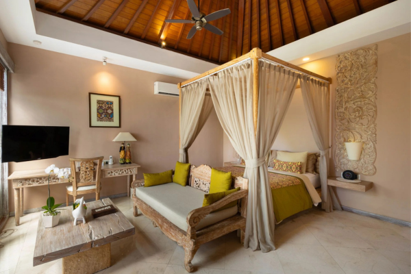 L’hôtel compte 48 hébergements d’exception, répartis entre suites et villas au design raffiné, mêlant élégance contemporaine et authenticité balinaise. Chaque logement a été imaginé comme un sanctuaire de sérénité, où le luxe discret se fond dans la nature environnante.
