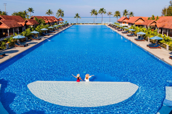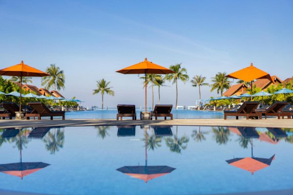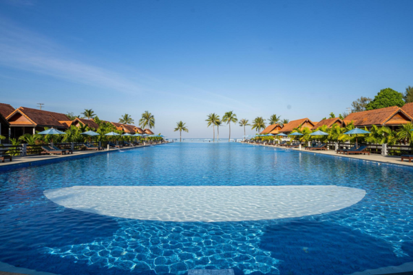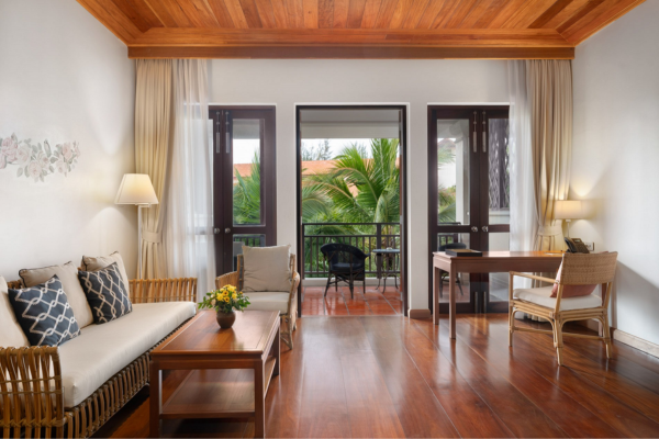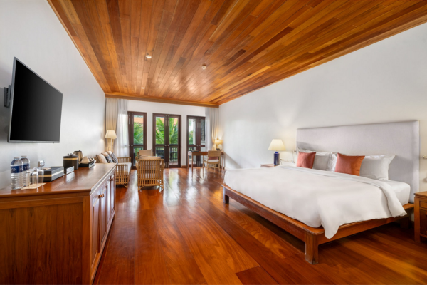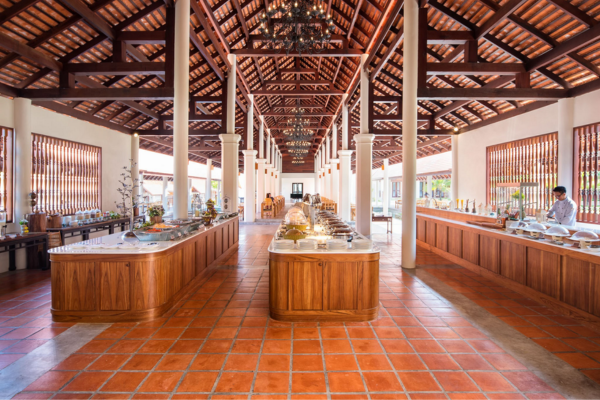 Le design rend hommage à l'héritage culturel de la région avec des structures en bois noble, des toits pointus traditionnels et des matériaux naturels. L'atmosphère y est apaisante, marquée par de vastes espaces ouverts qui laissent circuler la brise tropicale au milieu de jardins luxuriants et de plans d'eau intérieurs.