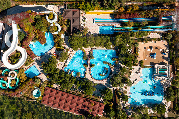 - Aquapark (25 000 m² avec 25 toboggans: 12 pour adultes et 13 pour enfants, 1 piscine avec activités (bain à remous, rivières etc...). ).
