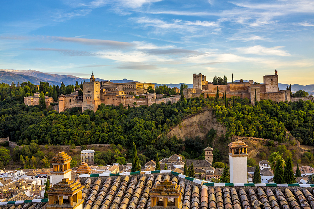 Petit-déjeuner. Aujourd’hui, découvrez Grenade, la perle andalouse, s’étendant sur des collines arborées, avec en toile de fond les sommets enneigés de la Sierra Nevada, où le Mulhacén culmine à 3 482 m d’altitude. D’un côté, la ville de Grenade s’offre au regard, de l’autre, la Méditerranée. Le quartier de l’Albaicín, avec ses maisons blanchies et son dédale de ruelles tortueuses, confère à la ville un charme unique, entre Orient et Occident. Déjeuner libre. L’après-midi, visite de l’Alhambra, spectaculaire cité fortifiée ceinte de hauts murs, perchée sur un promontoire dominant la ville. Ancienne résidence des rois maures, elle abrite de somptueux palais et de paisibles patios. Vous découvrirez l’Alcazaba, le palais de Charles V ainsi que les remarquables jardins suspendus du Generalife, qui surplombent l’Albaicín et le Sacromonte. Le panorama qu’ils offrent sur les alentours est saisissant. Dîner et nuit à l’hôtel.
