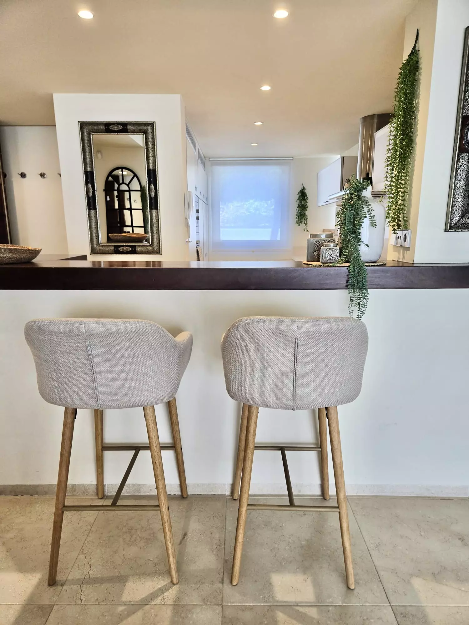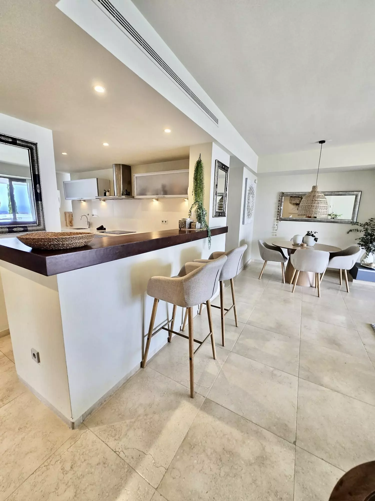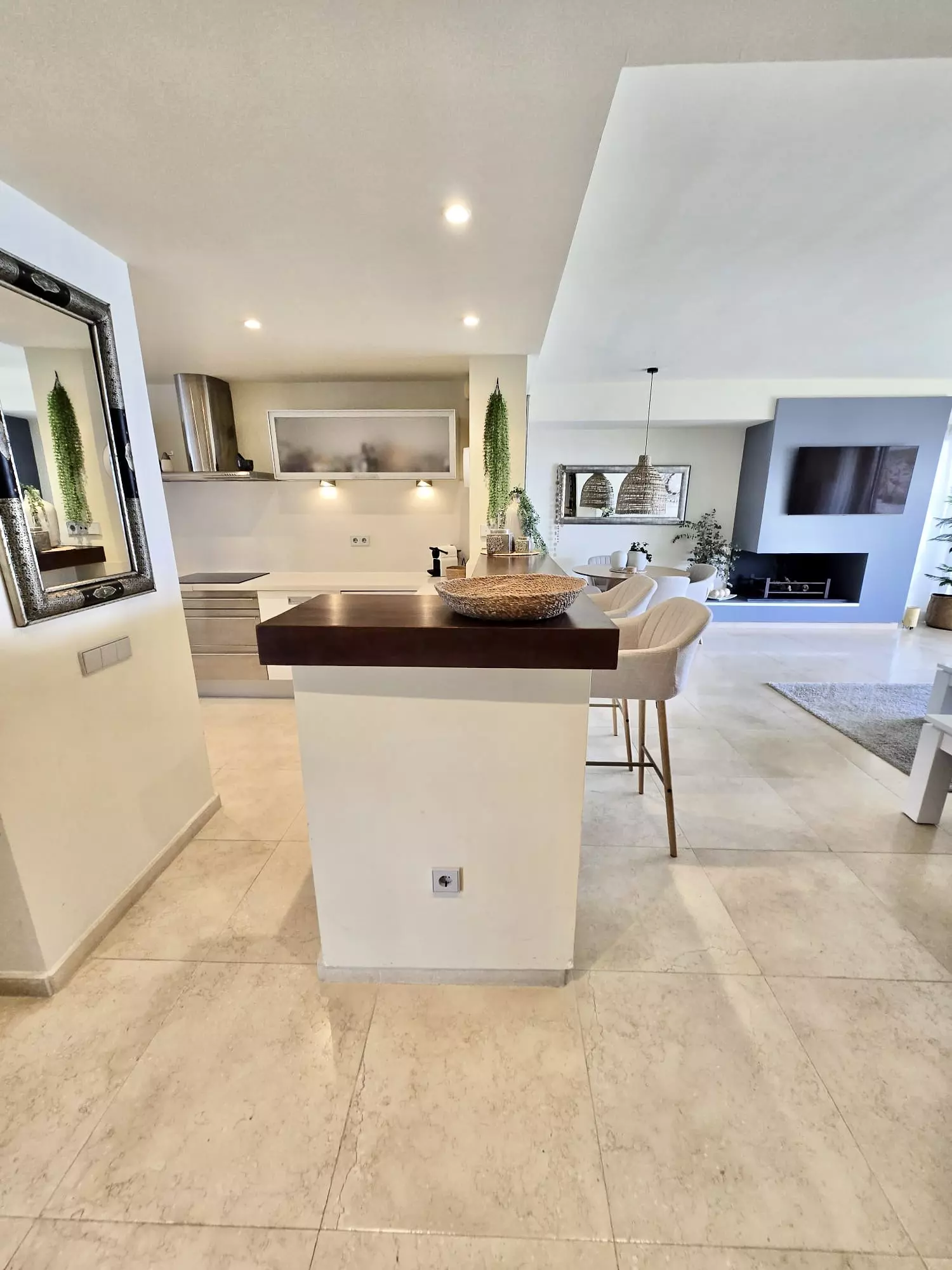 Une balade dans les jardins manucurés vous amènera à l'une des deux piscines de l'urbanisation, qui tout comme le reste de la résidence, ont un style contemporain aux lignes épurées. Les immenses baies vitrées dans tout l'appartement vous permettront de profiter au maximum de la luminosité de la Costa del sol, ainsi que des vues panoramiques sur la mer. La pièce de vie principale, avec sa cuisine américaine ultra moderne, ouvre directement sur l'immense terrasse et le jardin privé. Les deux chambres sont de belles dimensions, l'une d'elles avec une salle de bain en-suite avec baignoire et douche. La deuxième salle de bain dispose d'une belle douche en pierre naturelle.