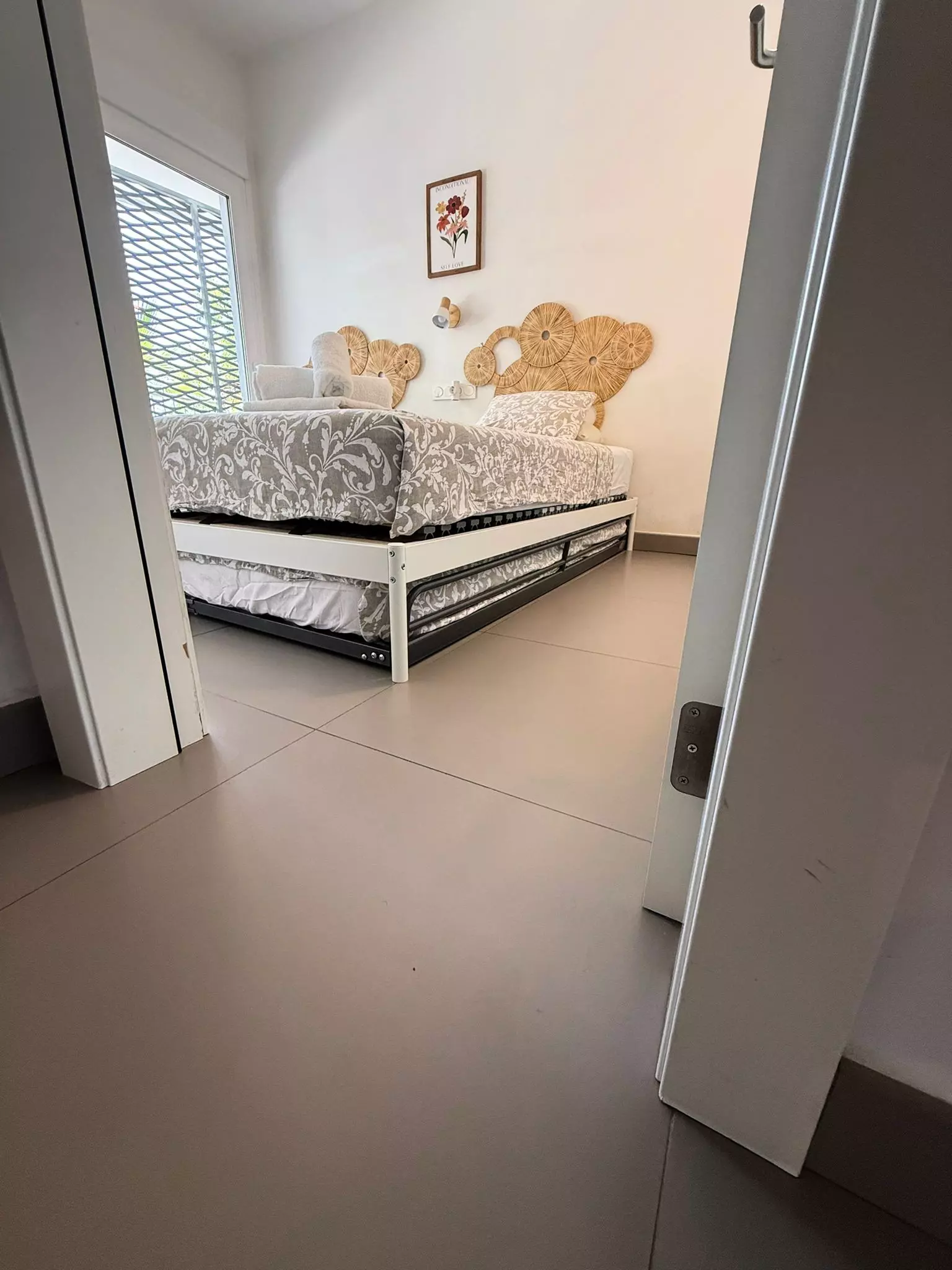 Appartement moderne de luxe avec 2 chambres à coucher, dont une avec un lit double ( 2p ) et l'autre avec 3 lits simples , 2 salles de bains, salle de séjour spacieuse avec une cuisine américaine entièrement équipée et une terrasse de plus de 45 m ²