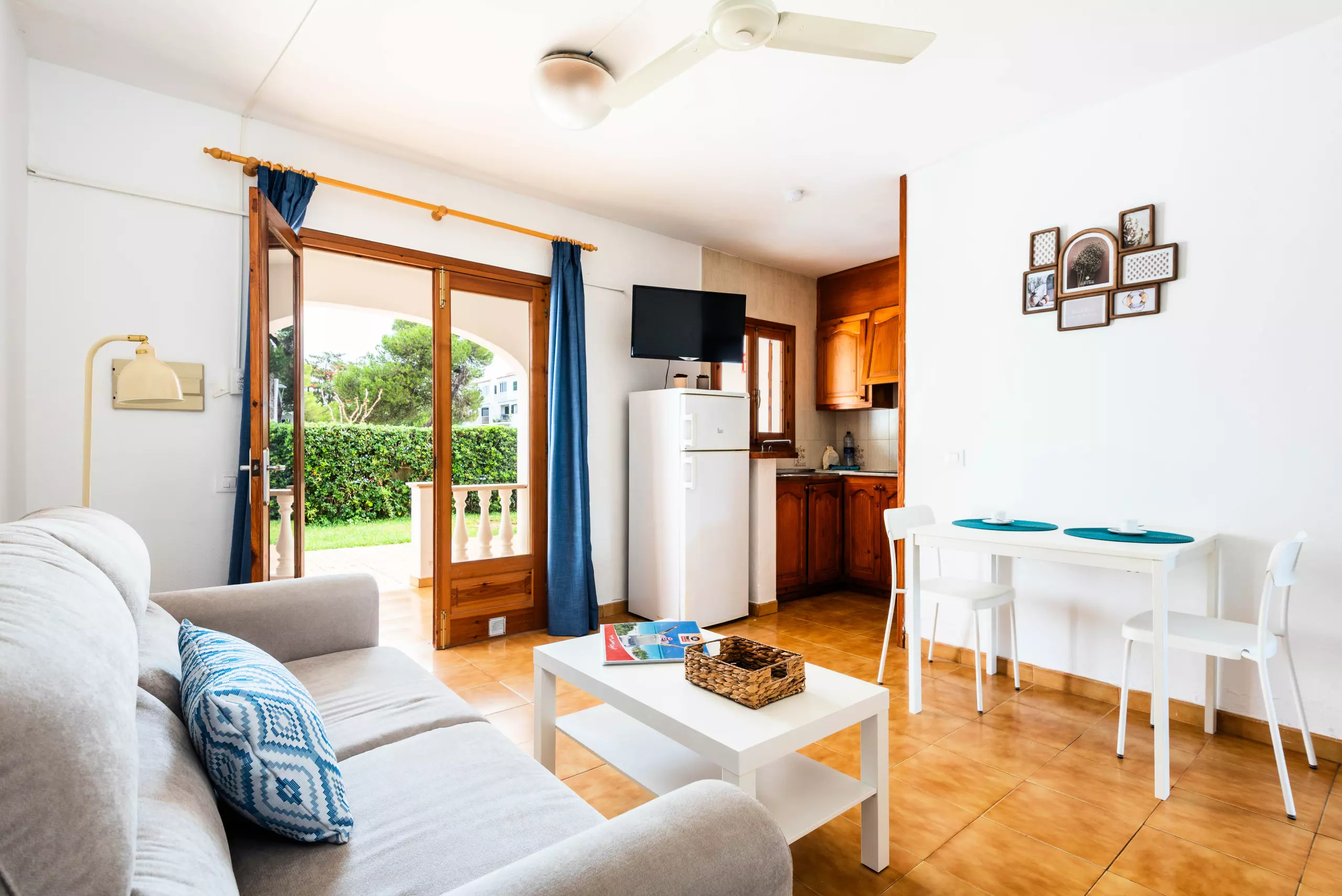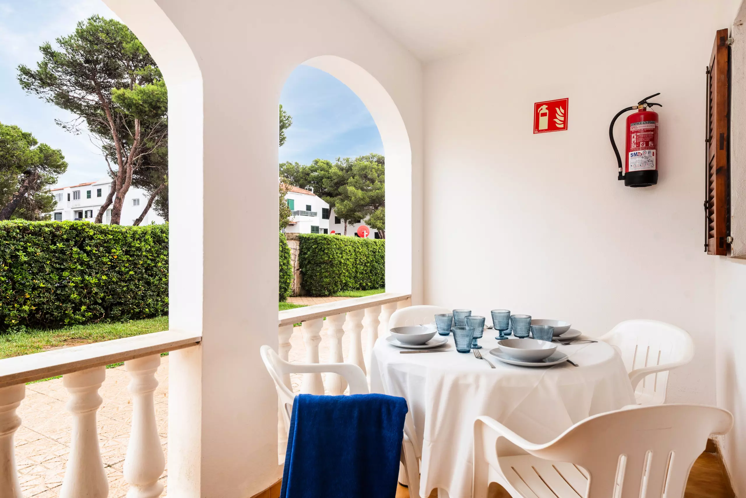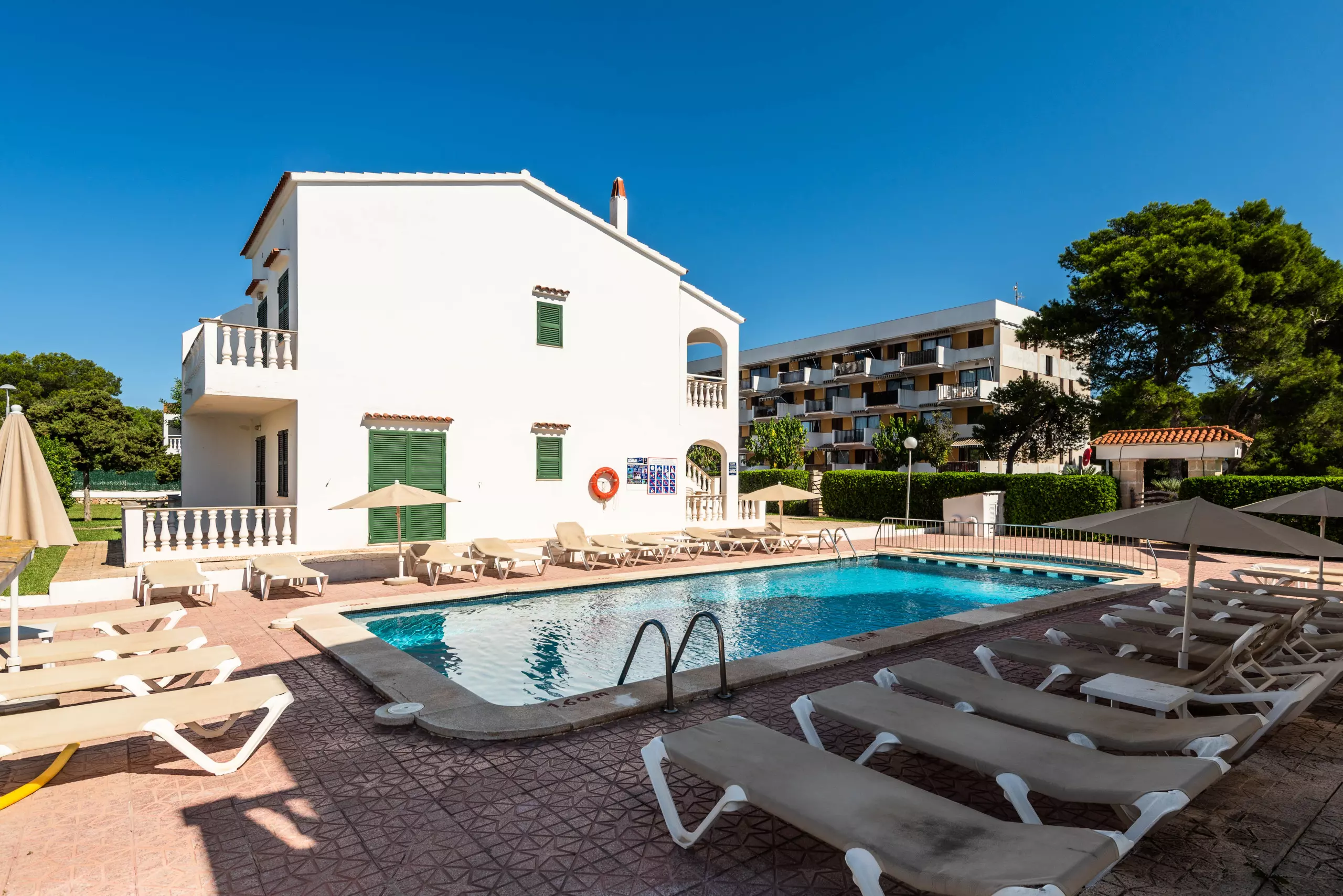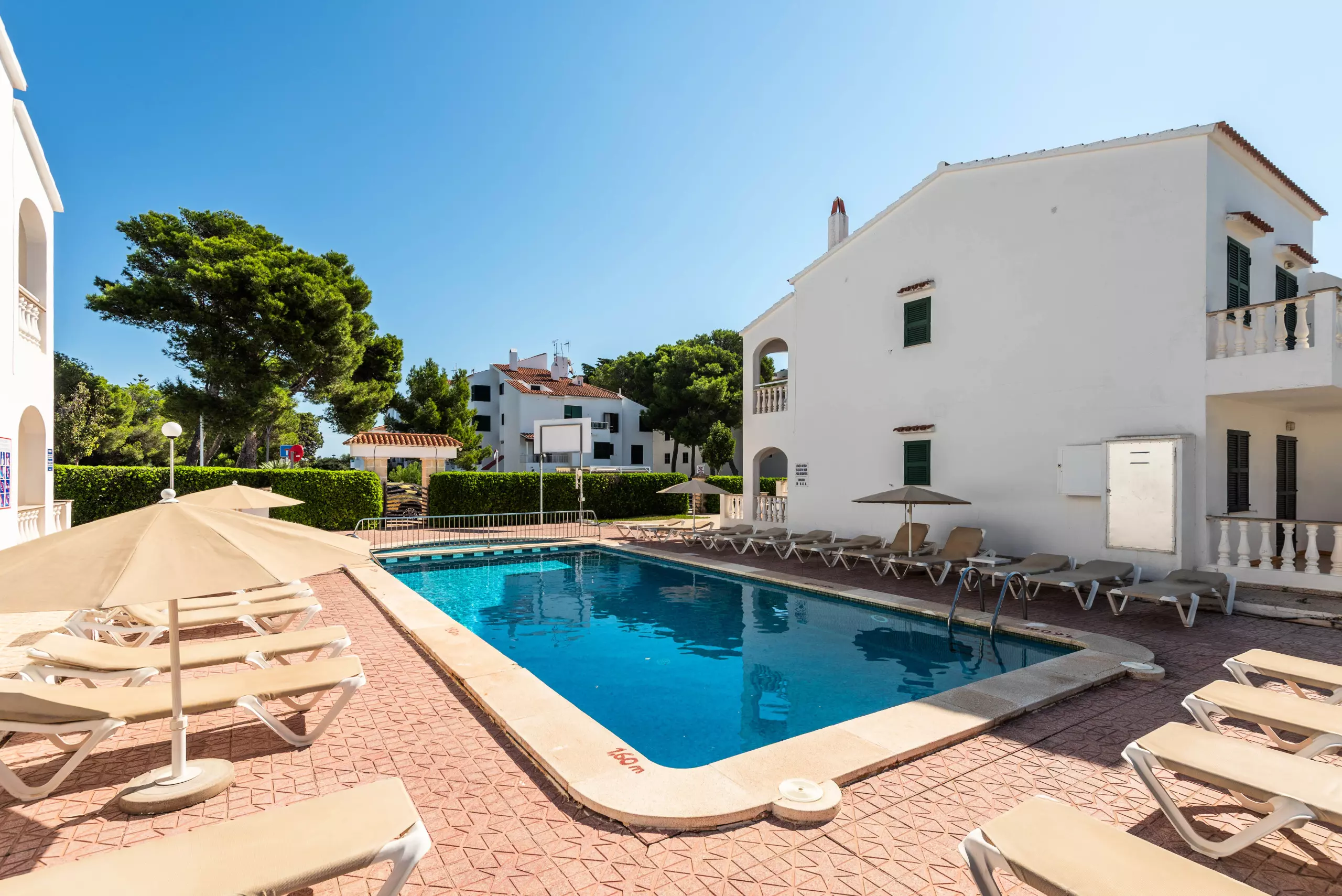 Le complexe offre une piscine communautaire avec une zone peu profonde pour les enfants, parfaite pour profiter du soleil menorquin en toute tranquillité.