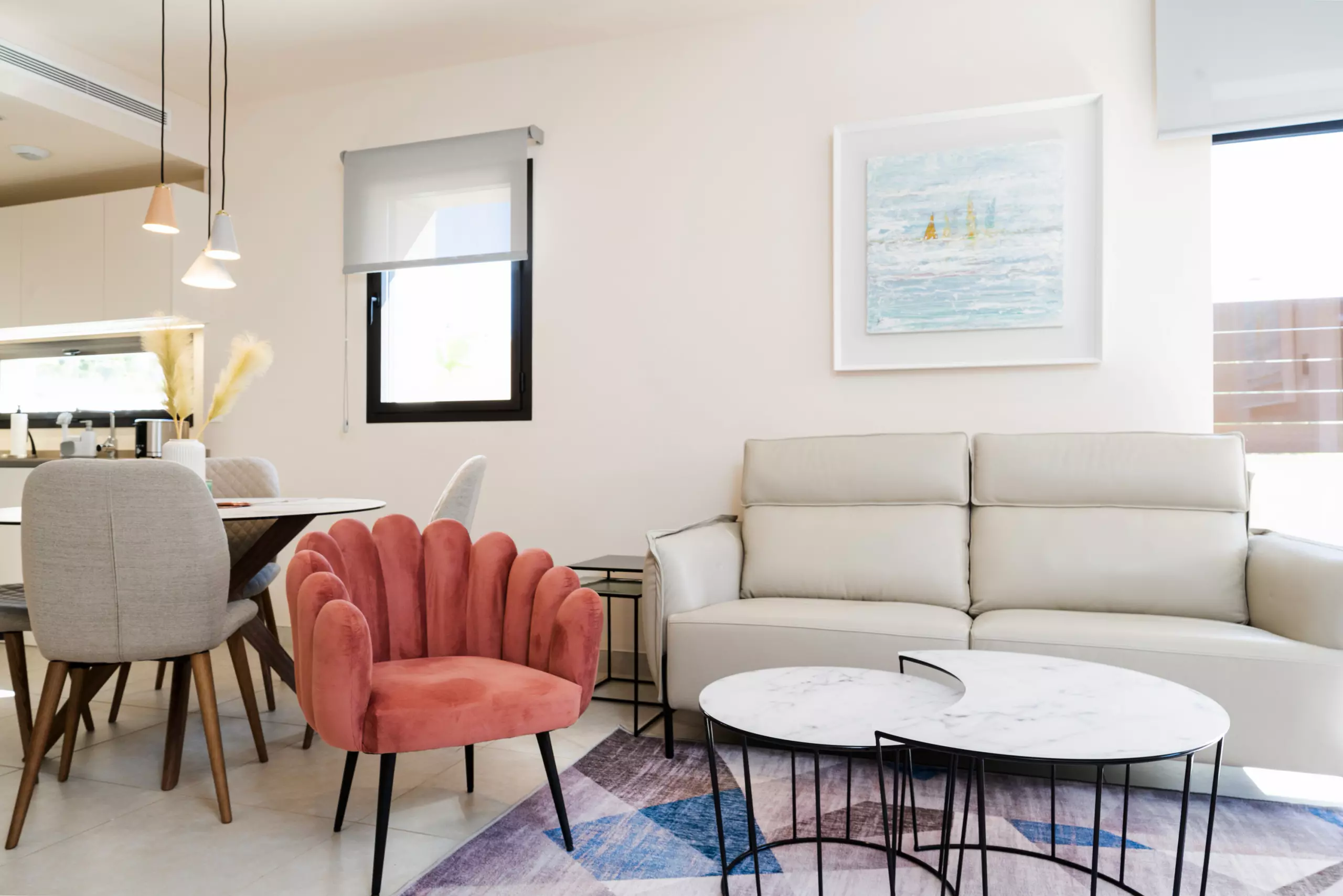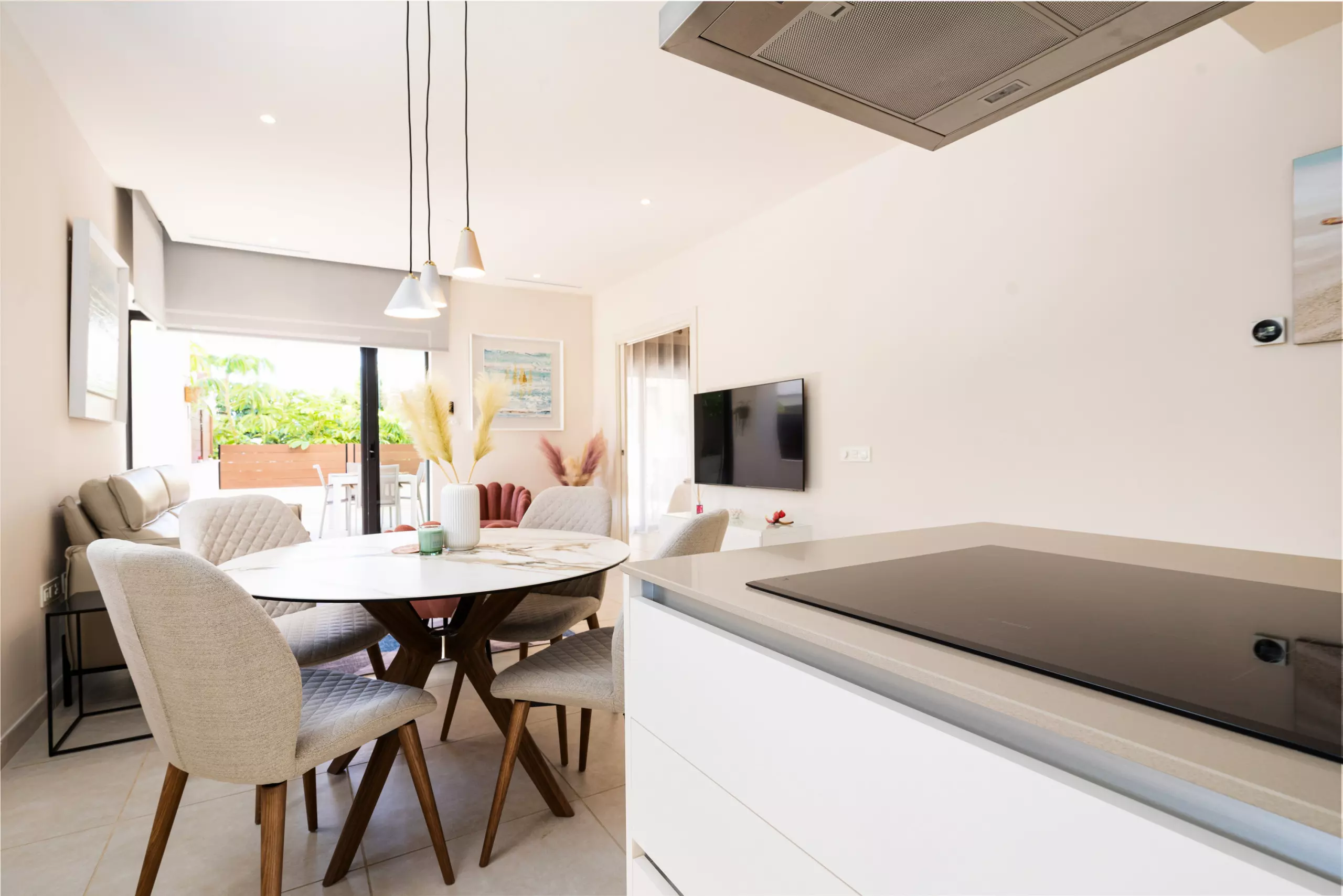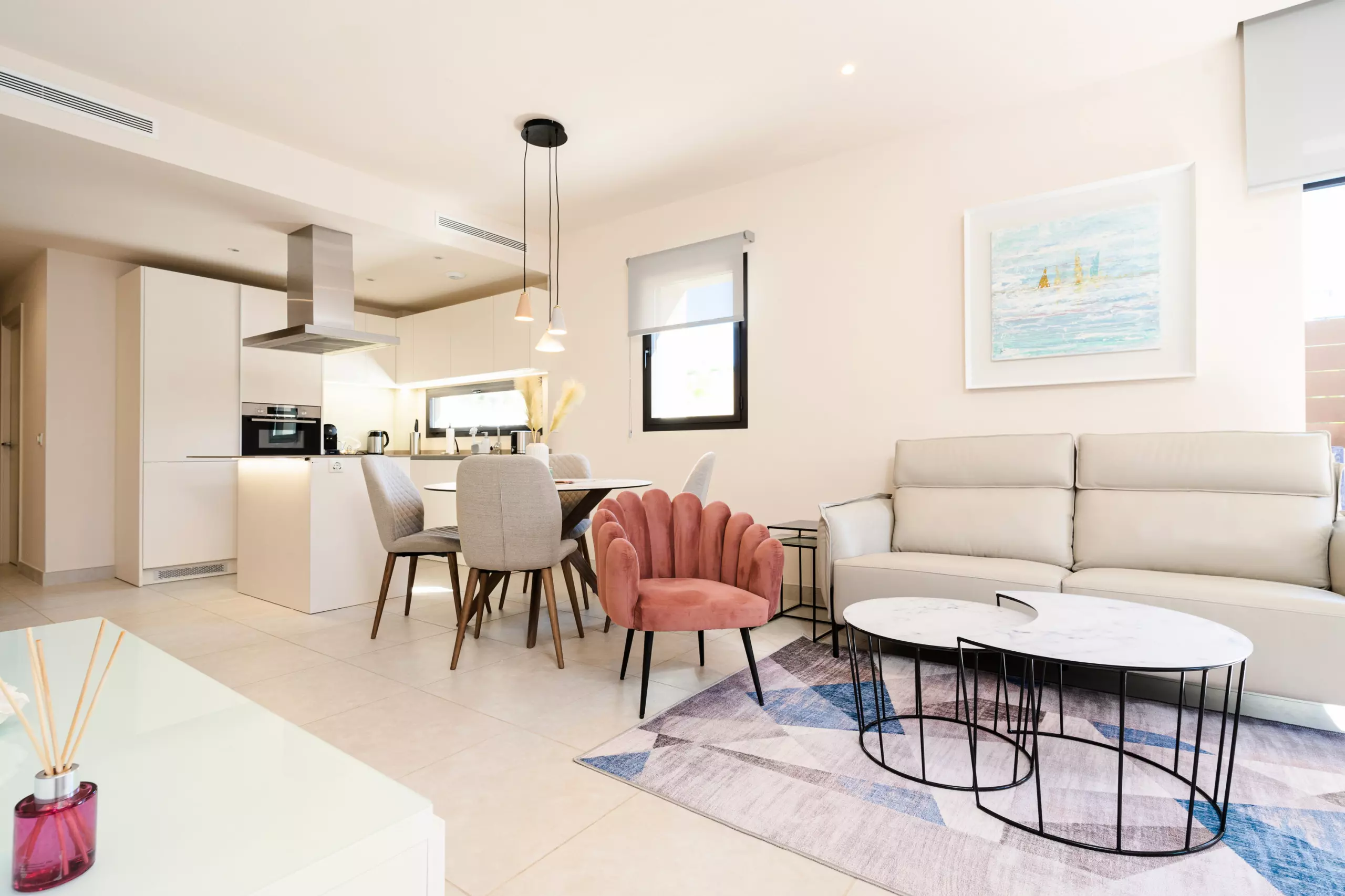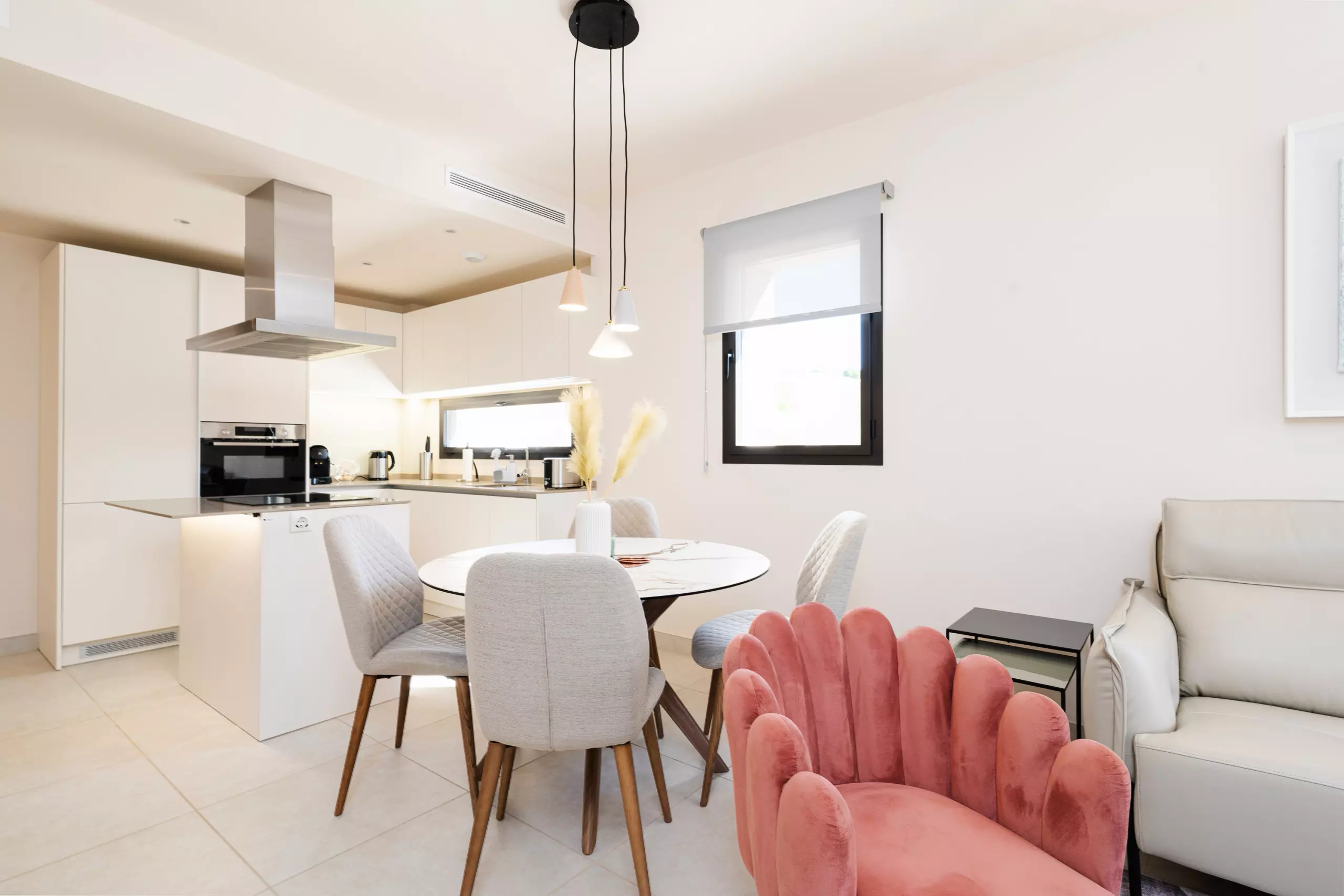 L'appartement dispose d'une cuisine ouverte à induction bien équipée, comprenant un réfrigérateur, un four micro-ondes, un four, un congélateur, un lave-linge, un lave-vaisselle et un ensemble complet de vaisselle, couverts et ustensiles de cuisine. De plus, il y a une machine à café, un grille-pain et une bouilloire, garantissant que vous disposez de tous les outils nécessaires pour préparer des repas et des boissons selon vos préférences. En plus des fournitures de cuisine mentionnées, cette location comprend également un système de filtre à eau pratique.