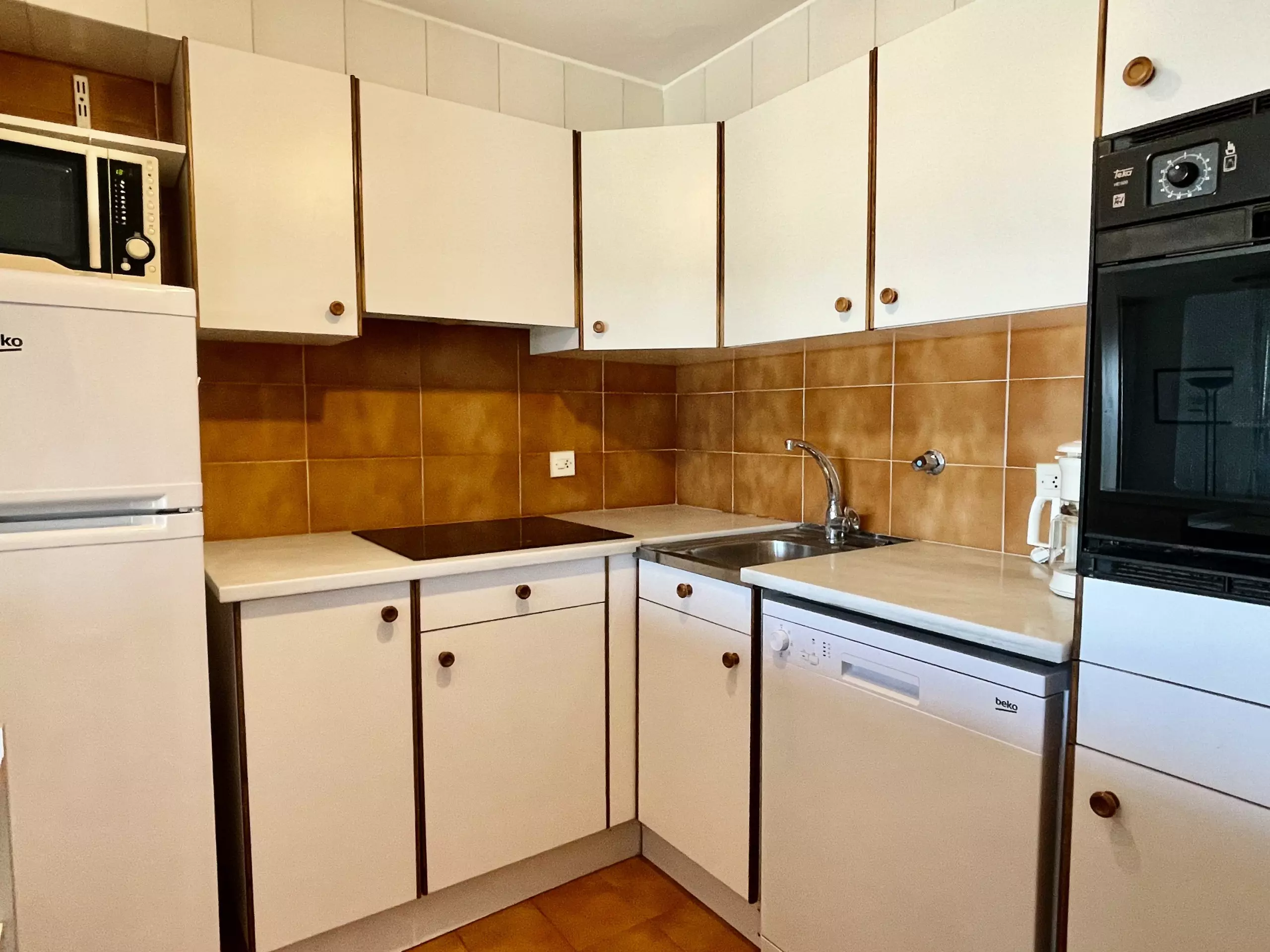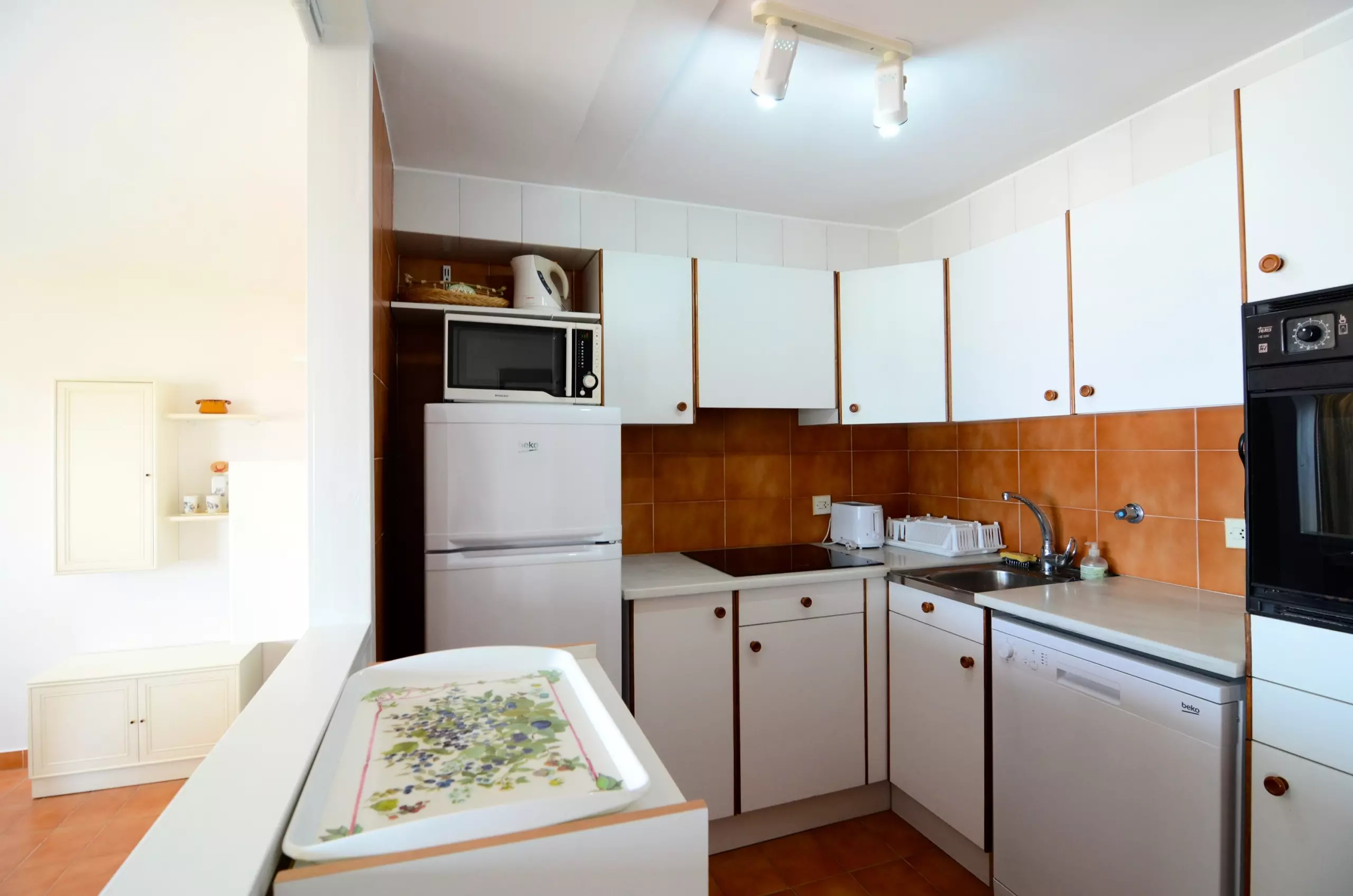 La cuisine américaine est entièrement équipée avec des appareils modernes tels qu'un réfrigérateur, un lave-linge, un lave-vaisselle, un four, un four micro-ondes, un grille-pain et une machine à café. Il comprend également des ustensiles complets pour que vous puissiez préparer vos repas facilement. En outre, il dispose d'une terrasse et de mobilier d'extérieur pour profiter de moments en plein air.