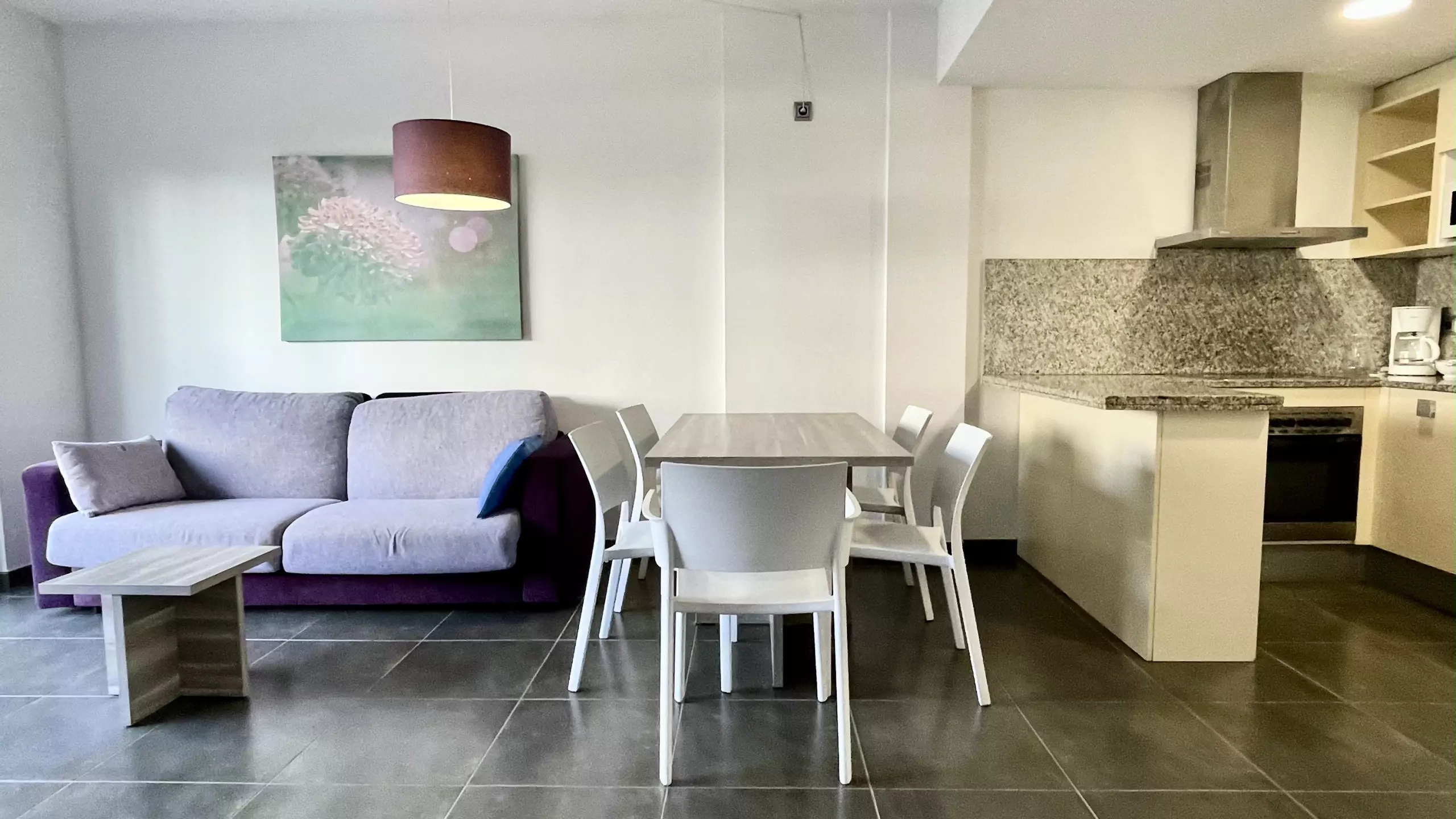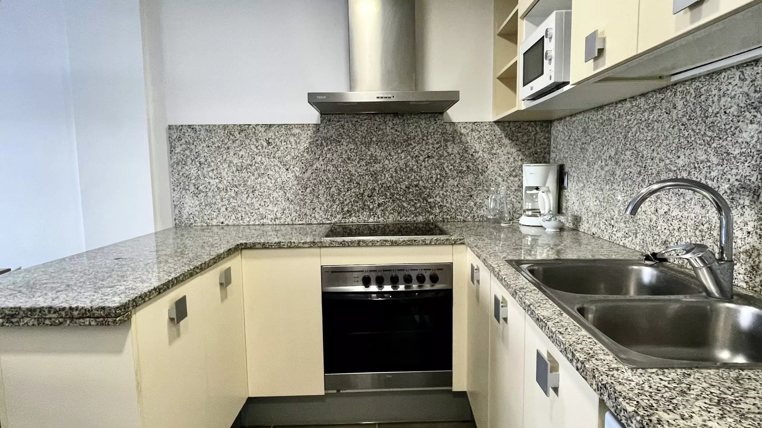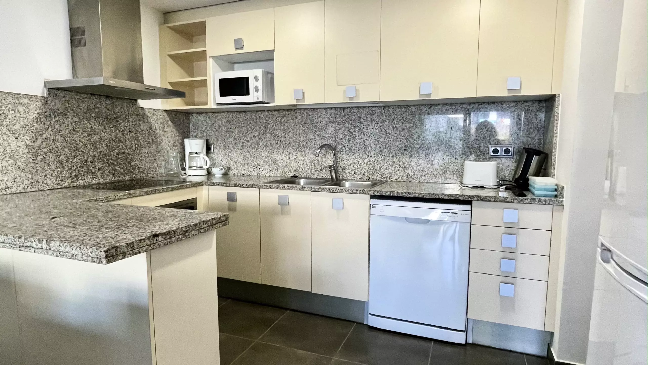 L'intérieur est entièrement équipé pour rendre votre séjour le plus confortable possible. Il dispose de deux chambres avec trois lits : un lit double, un canapé-lit et un lit individuel. La cuisine américaine est entièrement équipée d'appareils électroménagers modernes tels que lave-vaisselle, four, micro-ondes, cafetière et tous les ustensiles nécessaires pour préparer des repas familiaux.