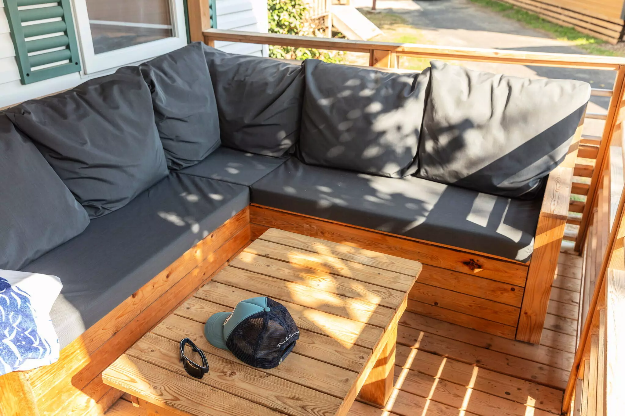 - Terrasse Lounge Privative : Partiellement ou totalement couverte, Terrasse en bois sur-élevée, Canapé d'extérieur, Salon de jardin (table et chaises)