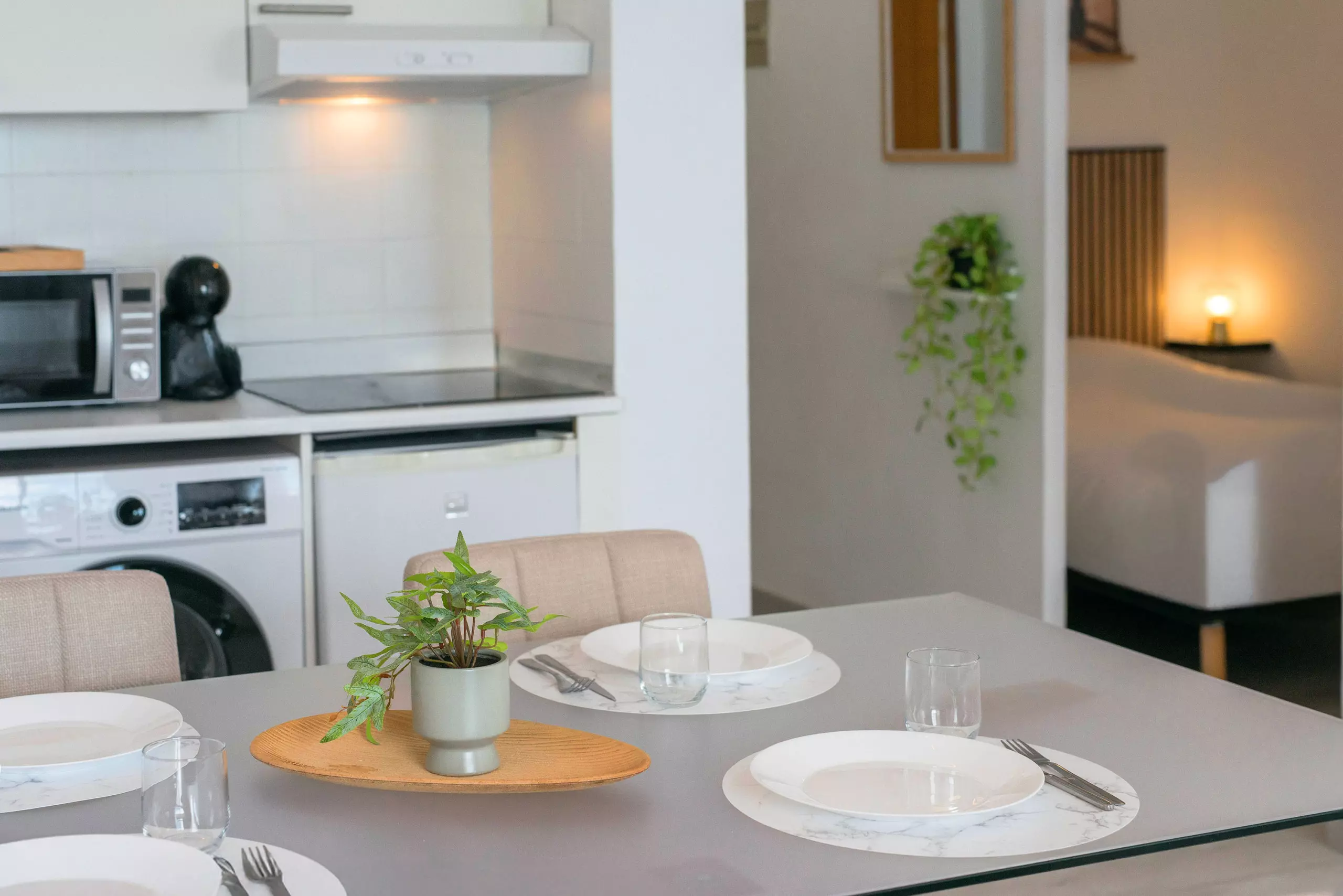 WiFi, climatisation, machine à laver, cuisine équipée, micro-ondes, linge de lit et serviettes.