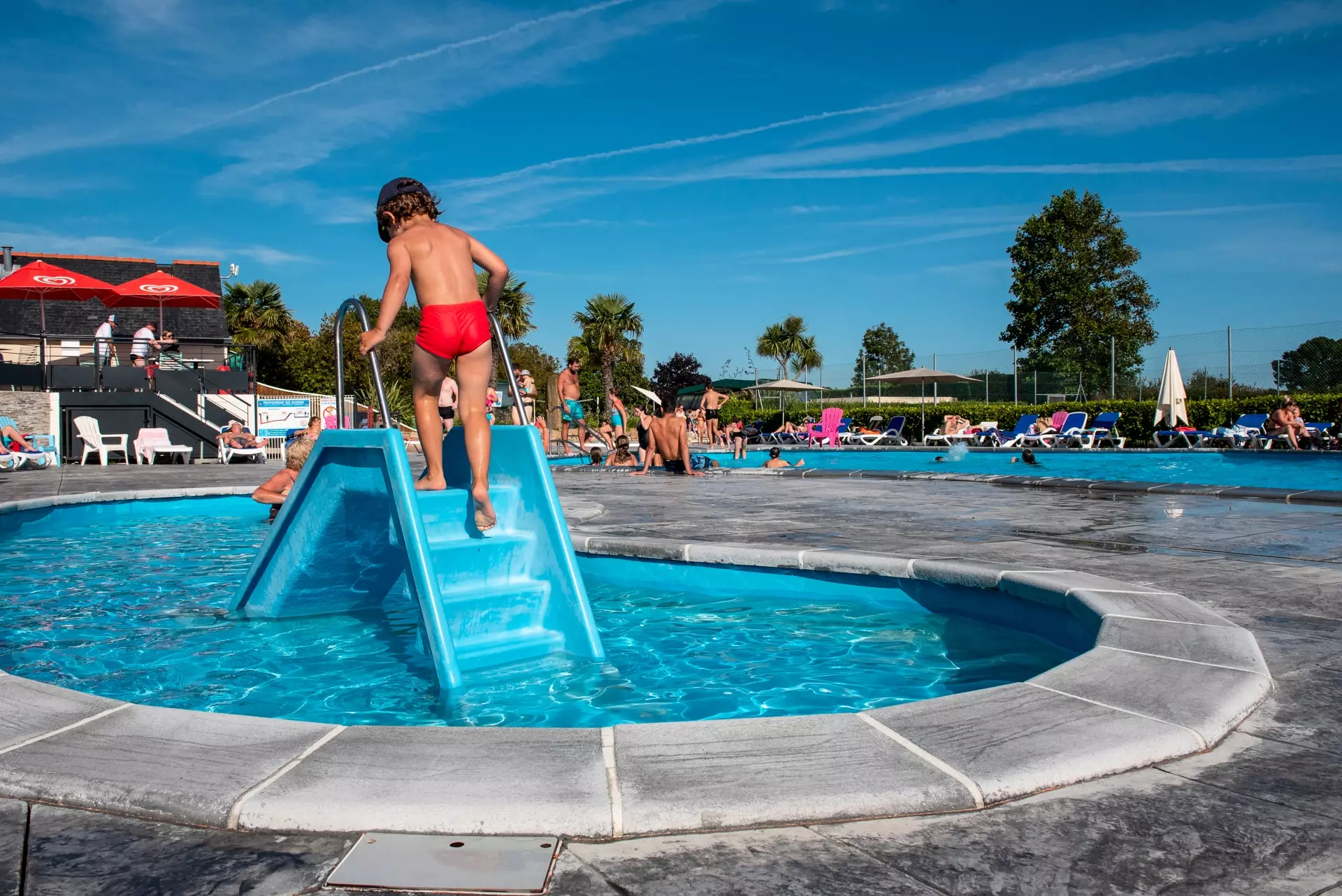 Piscine : Piscine 1 : pentaglisse, bains à remous sur les plages, pataugeoire, accès handicapés, , Ouverture : du 1 mai au 24 septembre, De 09:30 à 20:00 | Piscine 2 : jeux pour enfants, bains à remous inclus dans le bassin, pataugeoire, piscine pour enfants, , Ouverture : du 8 avril au 24 septembre, De 09:30 à 20:00 |
