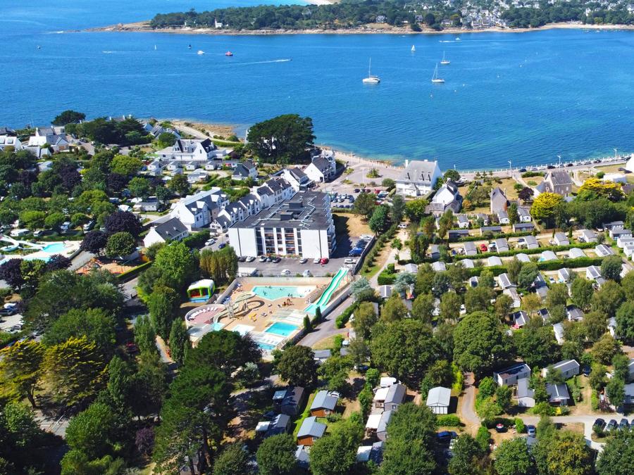 À 300 mètres de la mer et à 400 mètres de la grande plage de Bénodet, ce camping vous accueille dans un cadre verdoyant au coeur de la station balnéaire. L'espace aquatique comprend une piscine couverte et chauffée avec abri rétractable, un bassin de nage extérieur chauffé, deux toboggans aquatiques, une pataugeoire pour enfants et deux bains bouillonnants couverts.En été, un mini-club propose des activités variées pour les enfants de 4 à 11 ans. Des aires de jeux avec structures gonflables et trampolines sont également à disposition. Des animations familiales sont organisées en journée et en soirée. Pour les loisirs, vous trouverez une salle de remise en forme, un parcours de santé extérieur, un terrain multi-sports et un terrain de pétanque.Sur place, de juillet à août, profitez de toutes les commodités : bar, plats à emporter, épicerie et wifi gratuit sur l'ensemble du camping.
