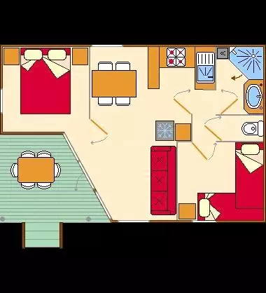 Mobil home Eco 4pers 38m² avec terrasse couverte 2 chambres, 4 personnes
