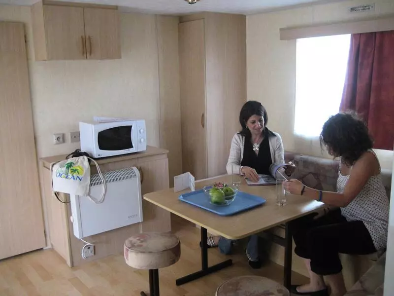 Le Mobil Home comprend un coin cuisine équipé avec réfrigérateur/congélateur, plaque de cuisson à gaz, micro-ondes, cafetière électrique, ustensiles de cuisine et vaisselle adaptée au nombre de personnes dans le logement.