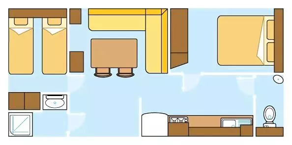 Les tailles de lits mentionnées sont non contractuelles. Il est possible d'avoir de légères différences de tailles selon les modèles de locatifs. La disposition des lits et la décoration peuvent également varier.