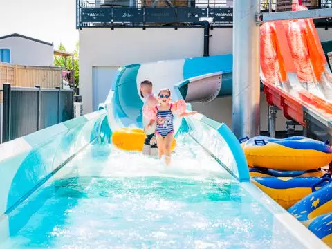 Le premier vous offre une piscine couverte et chauffée composée d'un bassin et d'une pataugeoire pour le plaisir des petits. À l'extérieur, profitez du bassin avec toboggans pour des moments de fun en famille. Vos enfants adoreront les jeux aqualudiques dans la piscine extérieure,