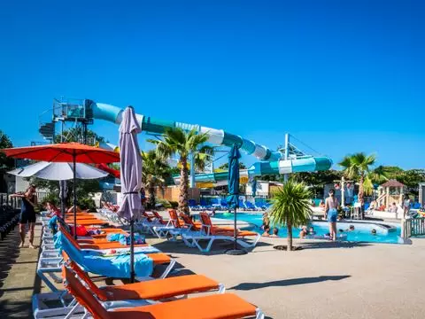 - Piscine extérieure, Chauffée, Ouvert toute la saison, 4 toboggans, Avec pataugeoire, Gratuit, Deuxième espace aquatique composé d'une piscine avec un rivière de marche, banquettes massantes et avec un pataugeoire. Des chaises longues sont à disposition pour profiter du soleil vendéen. Nouveauté 2025 : 4 nouvelles pistes de toboggans dont une à bouée !