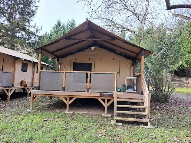 Entre Gorges et Viaduc petit camping familial calme et ombrage, equipement sanitaire complet avec lave linge, aire de jeux, plage, aire camping-cars, boulangerie, resto sympa a 150 m
