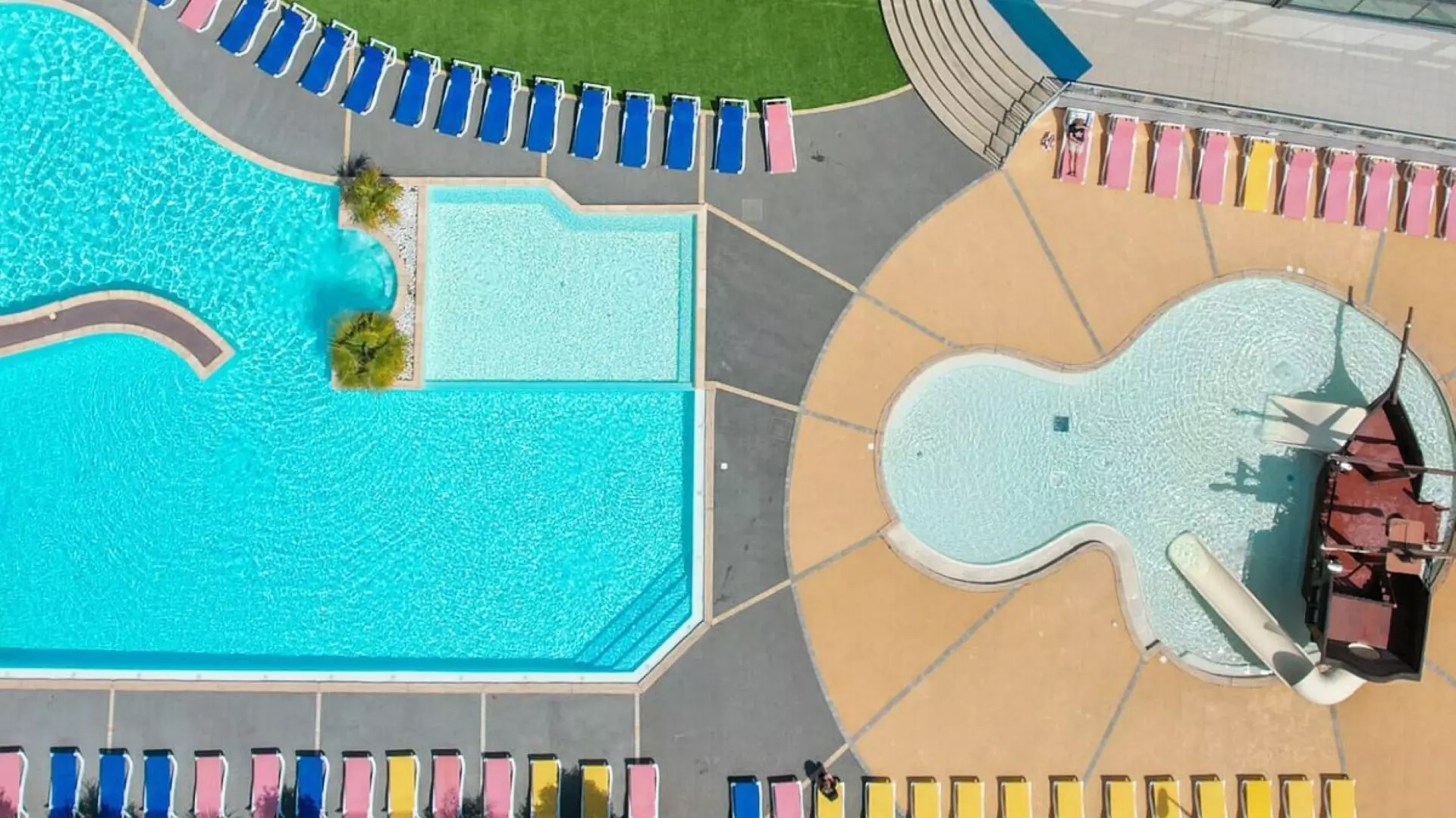 - Piscine extérieure avec pataugeoire, toboggans et bateau pirate