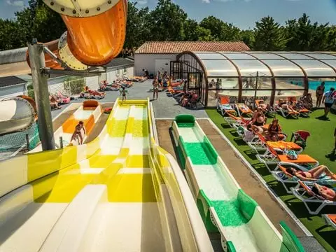 Le camping d'Oléron Loisirs est à seulement 3 km des plages de sables fin. Idéal pour des vacances en famille. Pour agrémenter votre séjour, vous trouverez sur place un espace aquatique composé d'une piscine couverte découvrable ainsi que d'un bassin extérieur avec pentaglisse aquatique et pataugeoire pour les enfants, une aire de jeux aqualudique couverte, 4 toboggans aquatiques, sauna et hammam.
