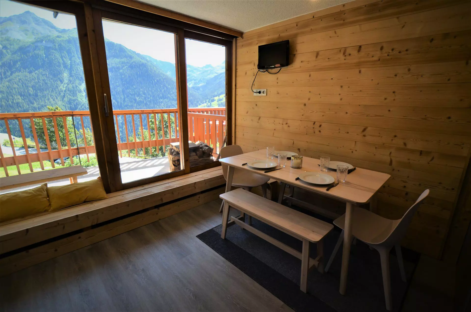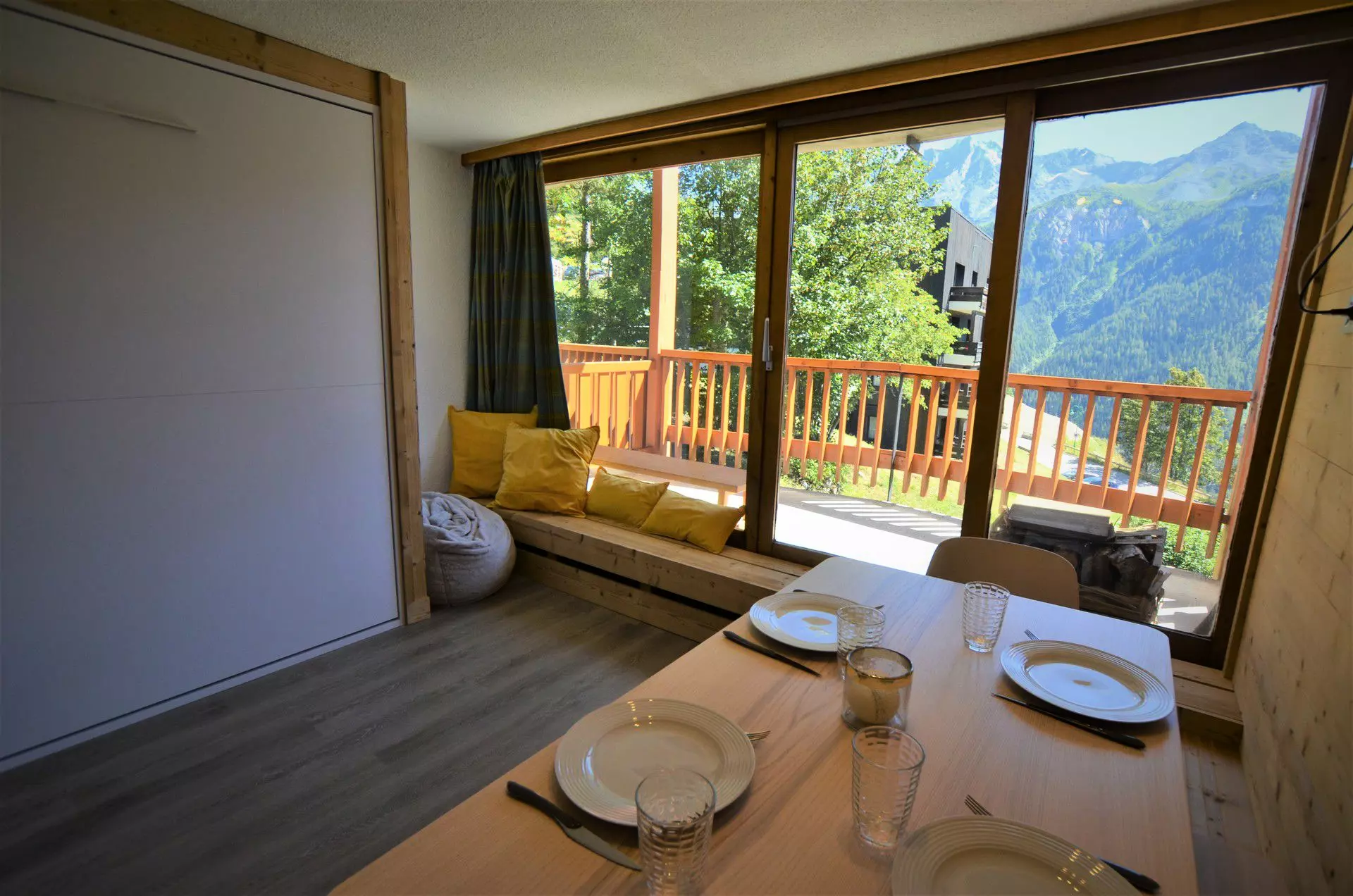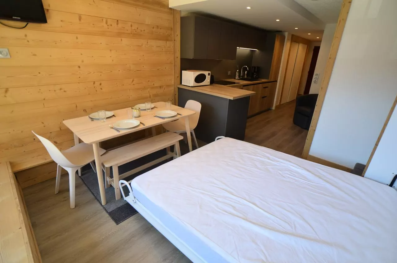Beau studio cabine rénové en 2020 avec une belle vue Sud sur la montagne.