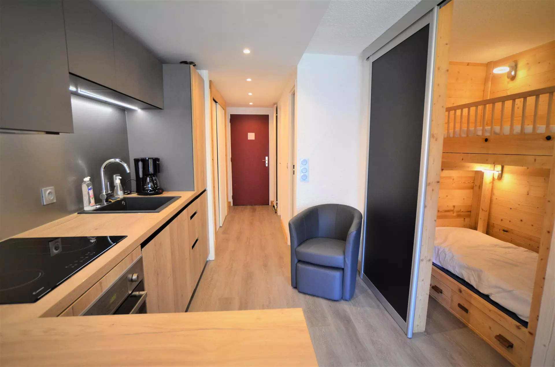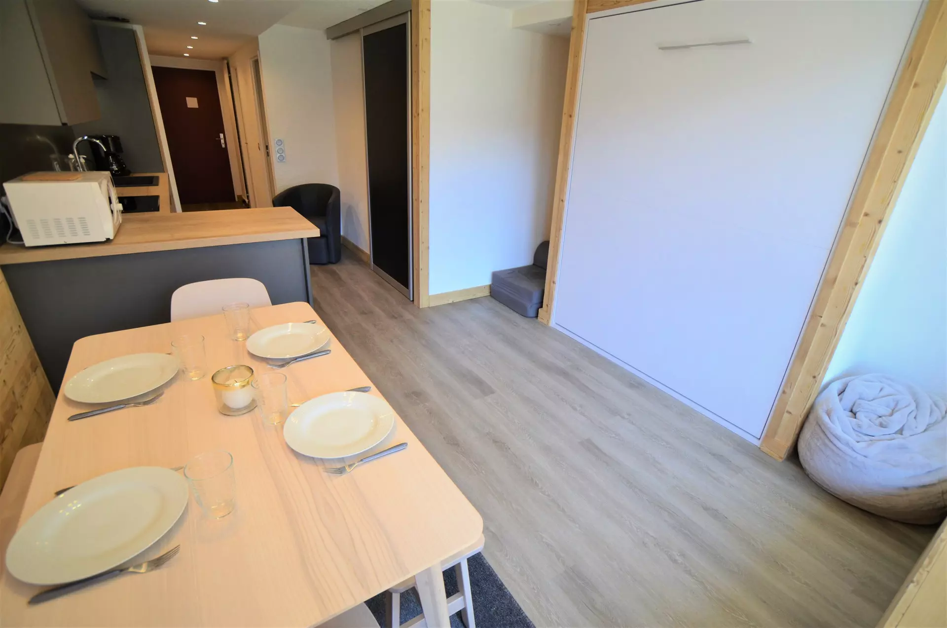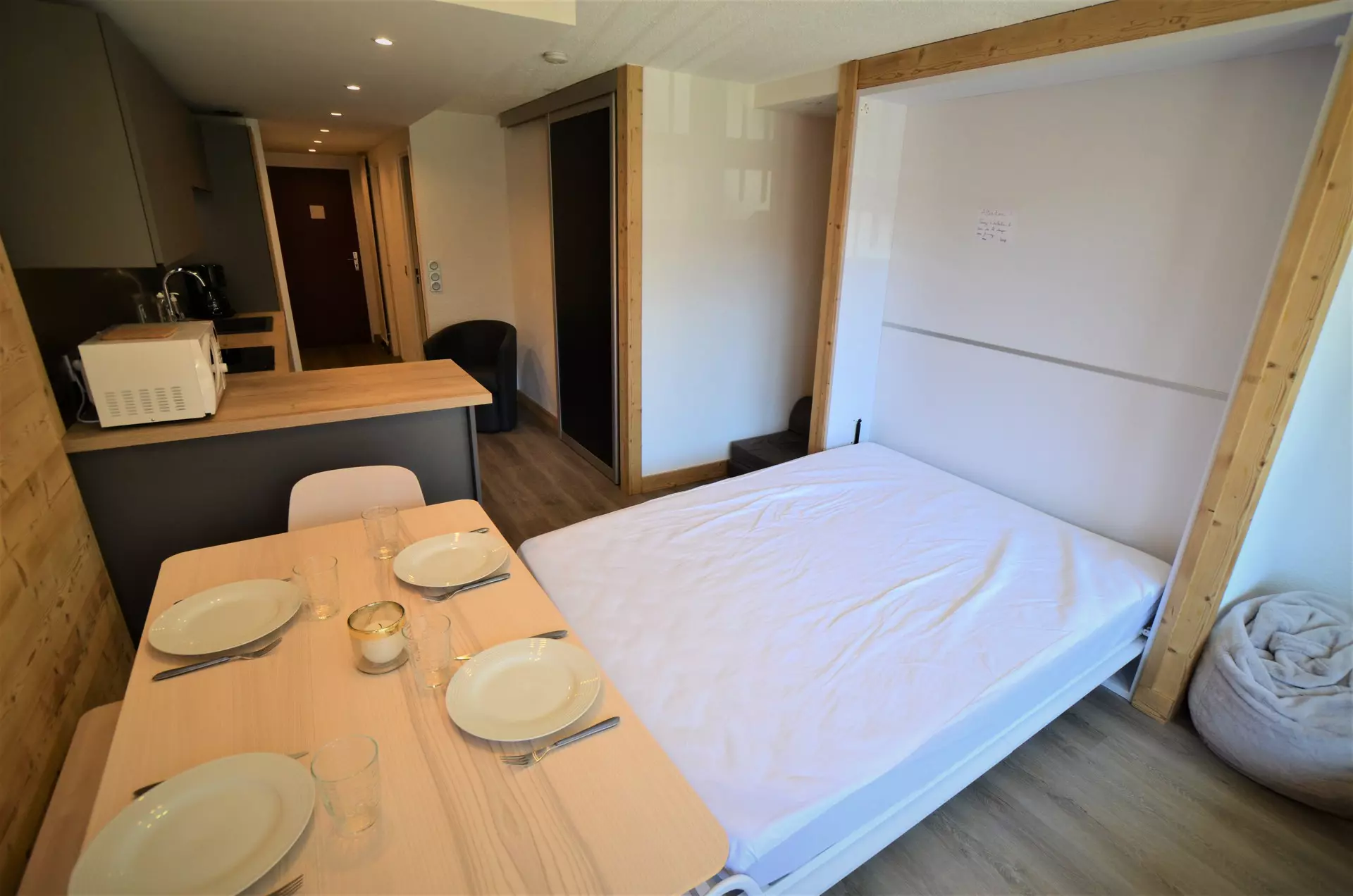 Beau studio cabine rénové en 2020 avec une belle vue Sud sur la montagne.