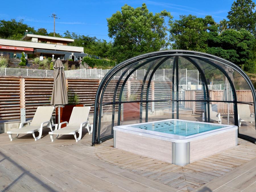 - Description : Une piscine avec un espace détente avec jacuzzi, caleçon interdit et maillot de bain obligatoire.