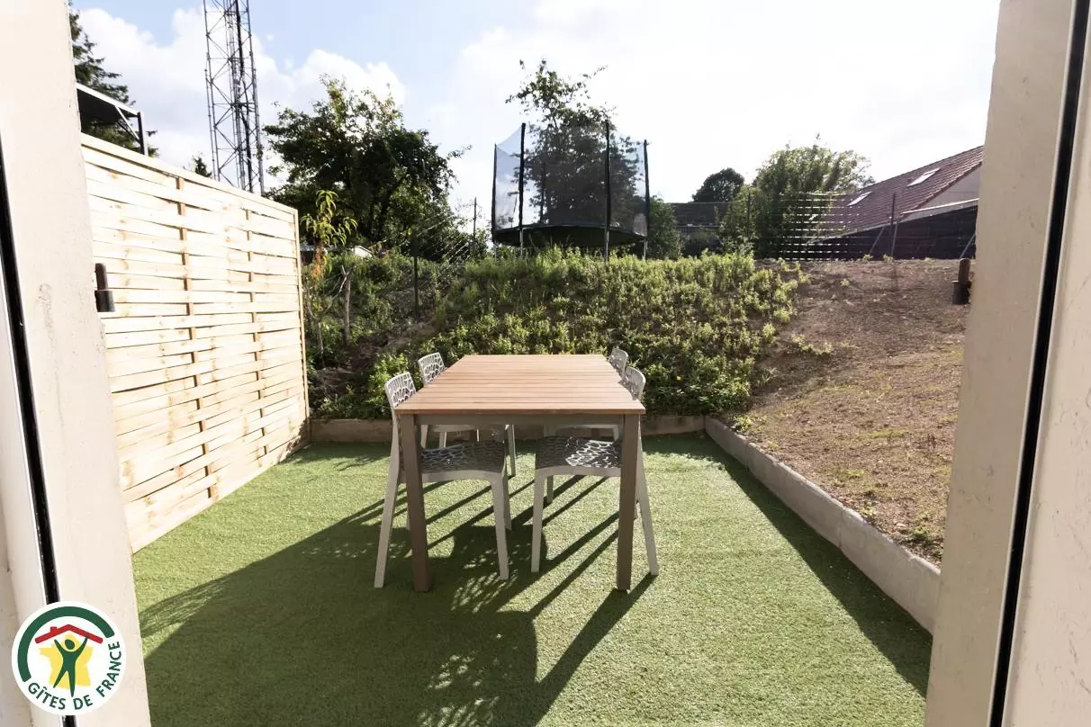 Le gîte se trouve au rez-de-jardin de l'habitation des propriétaire avec un accès indépendant et une terrasse (jardin complètement clos).
