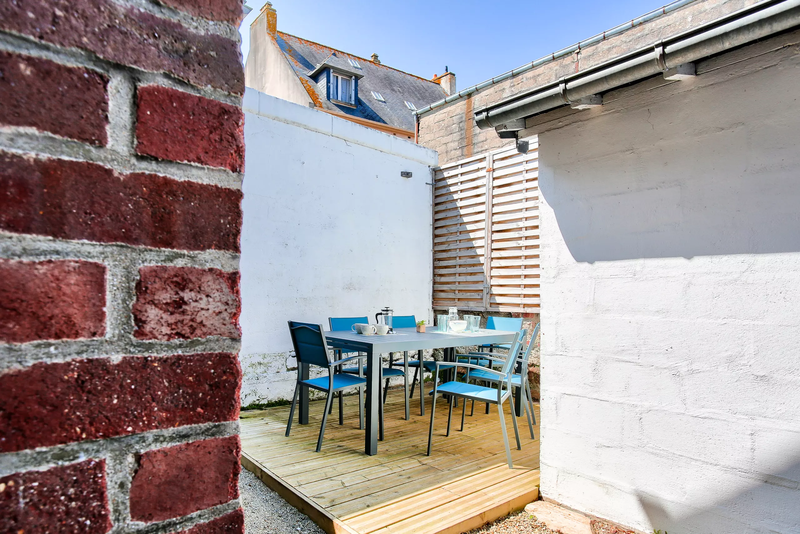 À l'arrière, une terrasse sans vis-à-vis avec mobilier de jardin et barbecue vous permet de profiter pleinement du soleil et de vos soirées d'été en toute tranquillité.