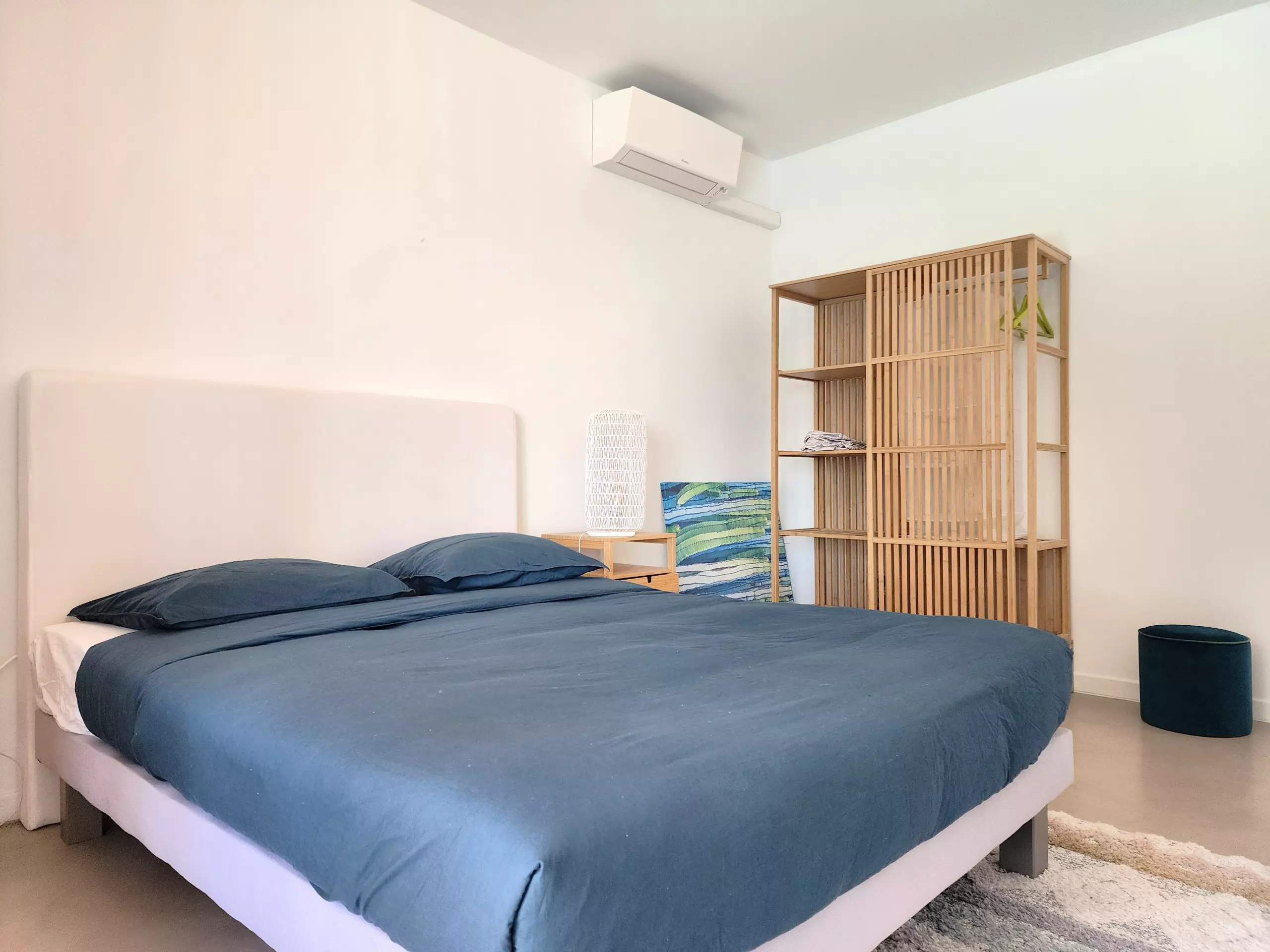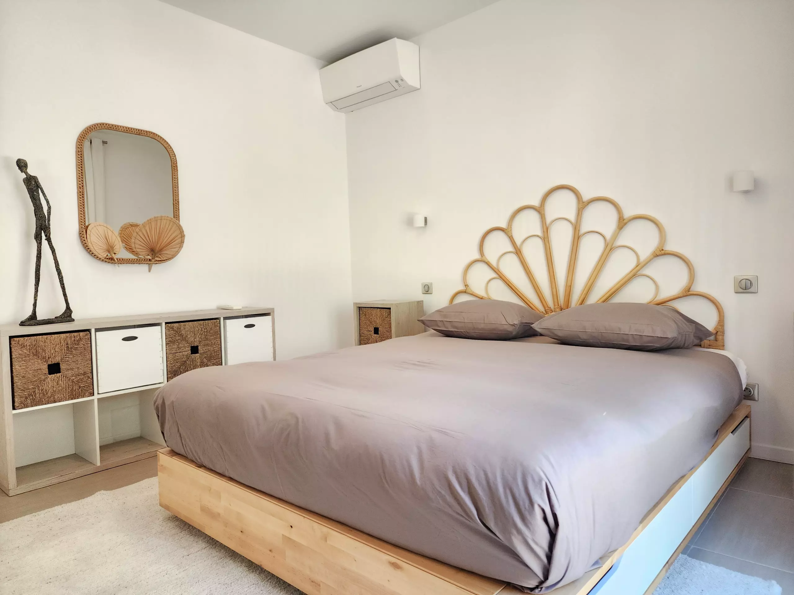 1 chambre avec lit double (160 cm), rangements, accès piscine