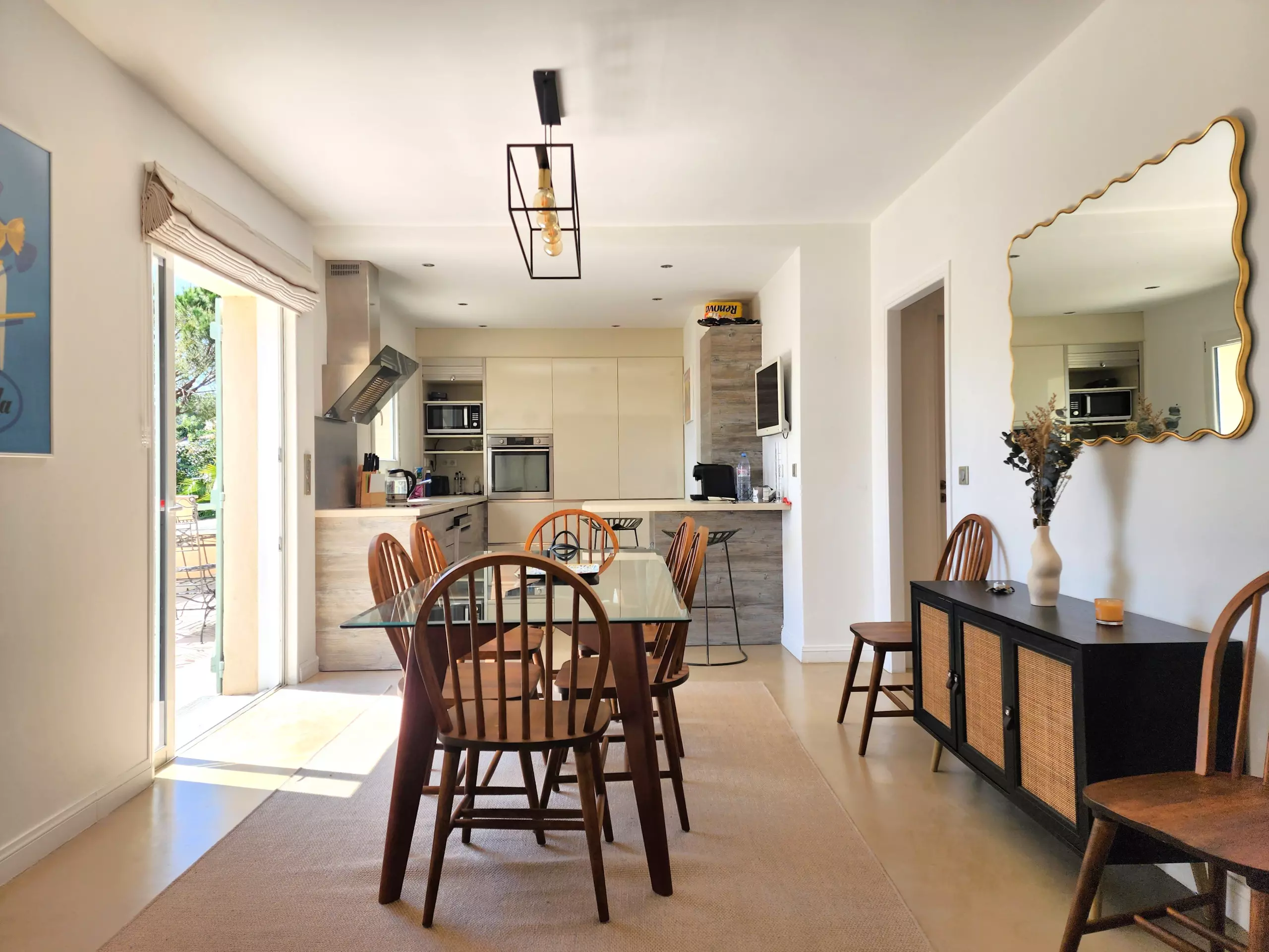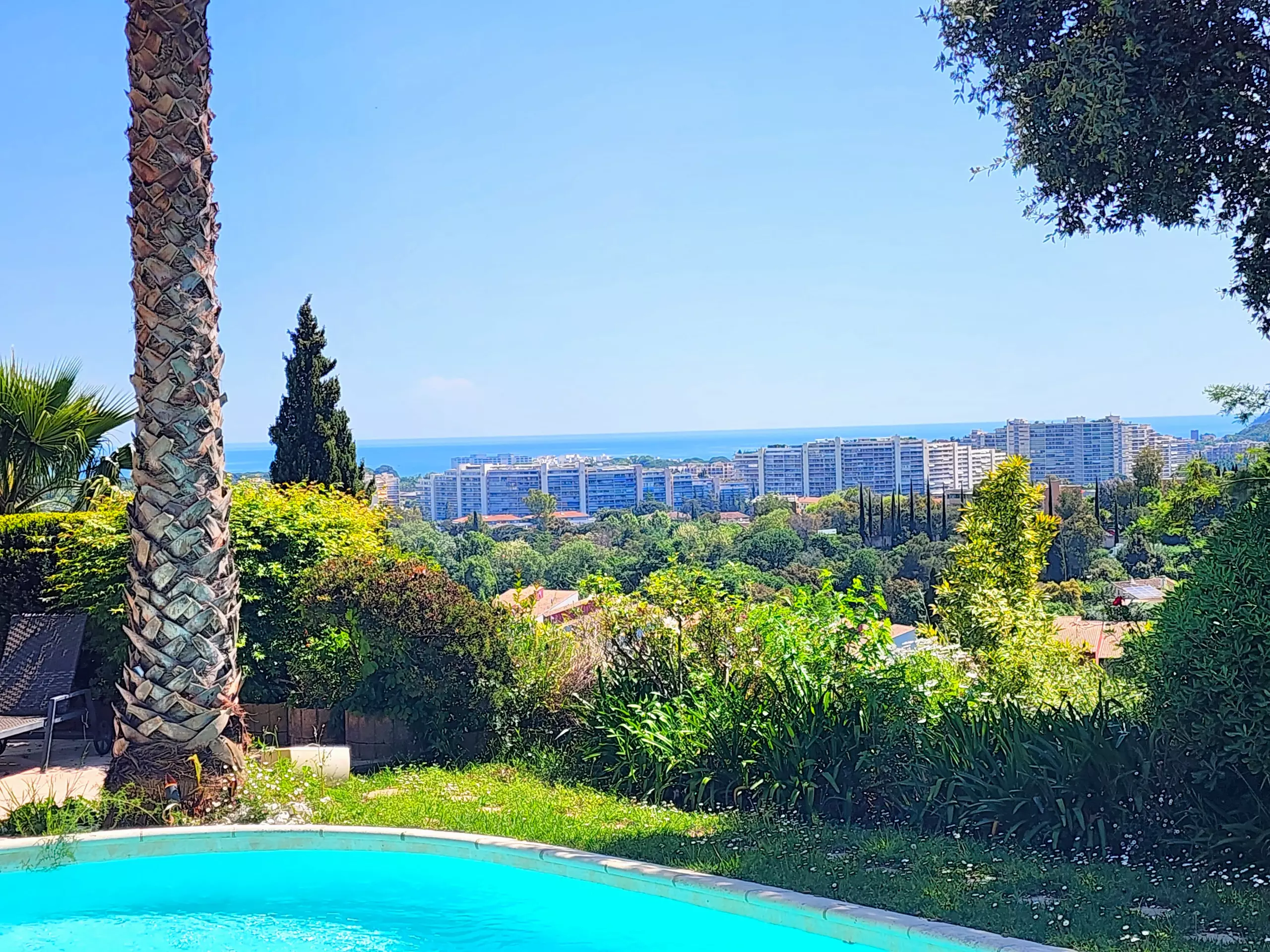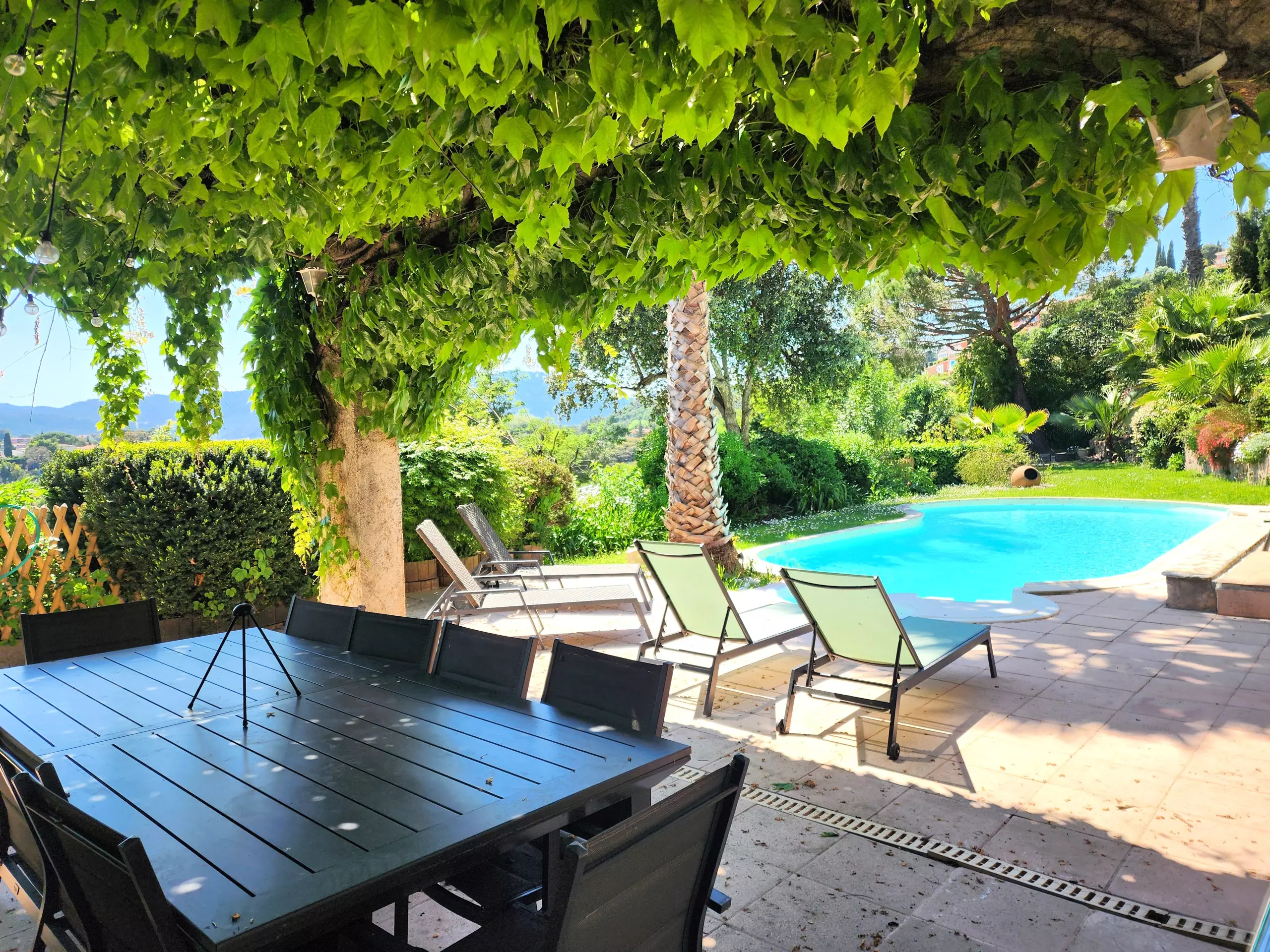 Située sur les hauteurs de Mandelieu, à seulement 9 km de Cannes et de la célèbre Croisette, cette superbe villa entièrement rénovée est idéale pour des vacances placées sous le signe de la détente. Implantée sur un terrain clos de 2 800 m², elle offre une vue mer panoramique exceptionnelle sur les îles de Lérins et la baie de Cannes.