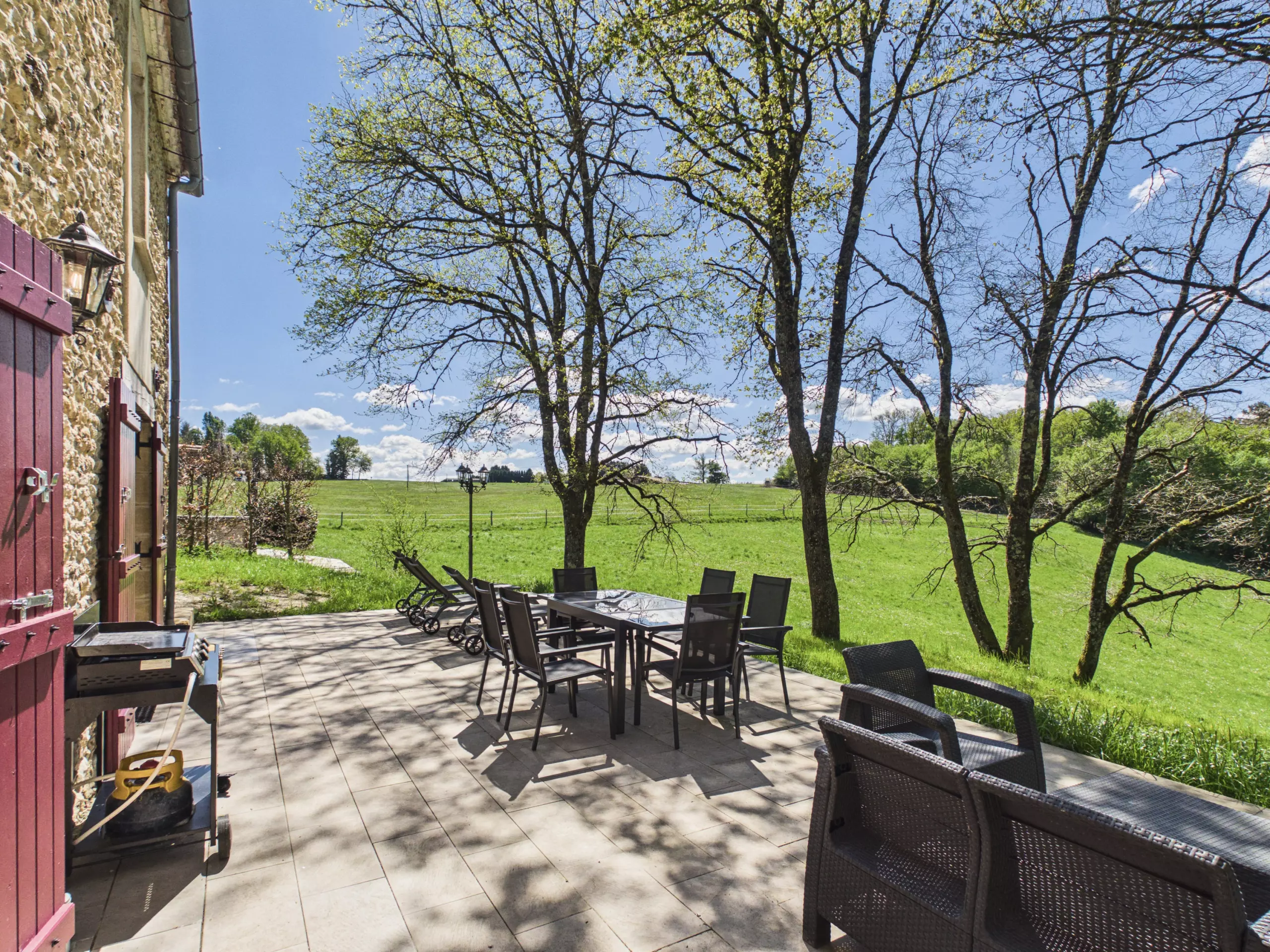 Côté jardin, une terrasse couverte avec mobilier de jardin et plancha vous permettra de savourer de délicieux repas en plein air, à proximité de la piscine hors-sol, idéale pour vous rafraîchir en été.