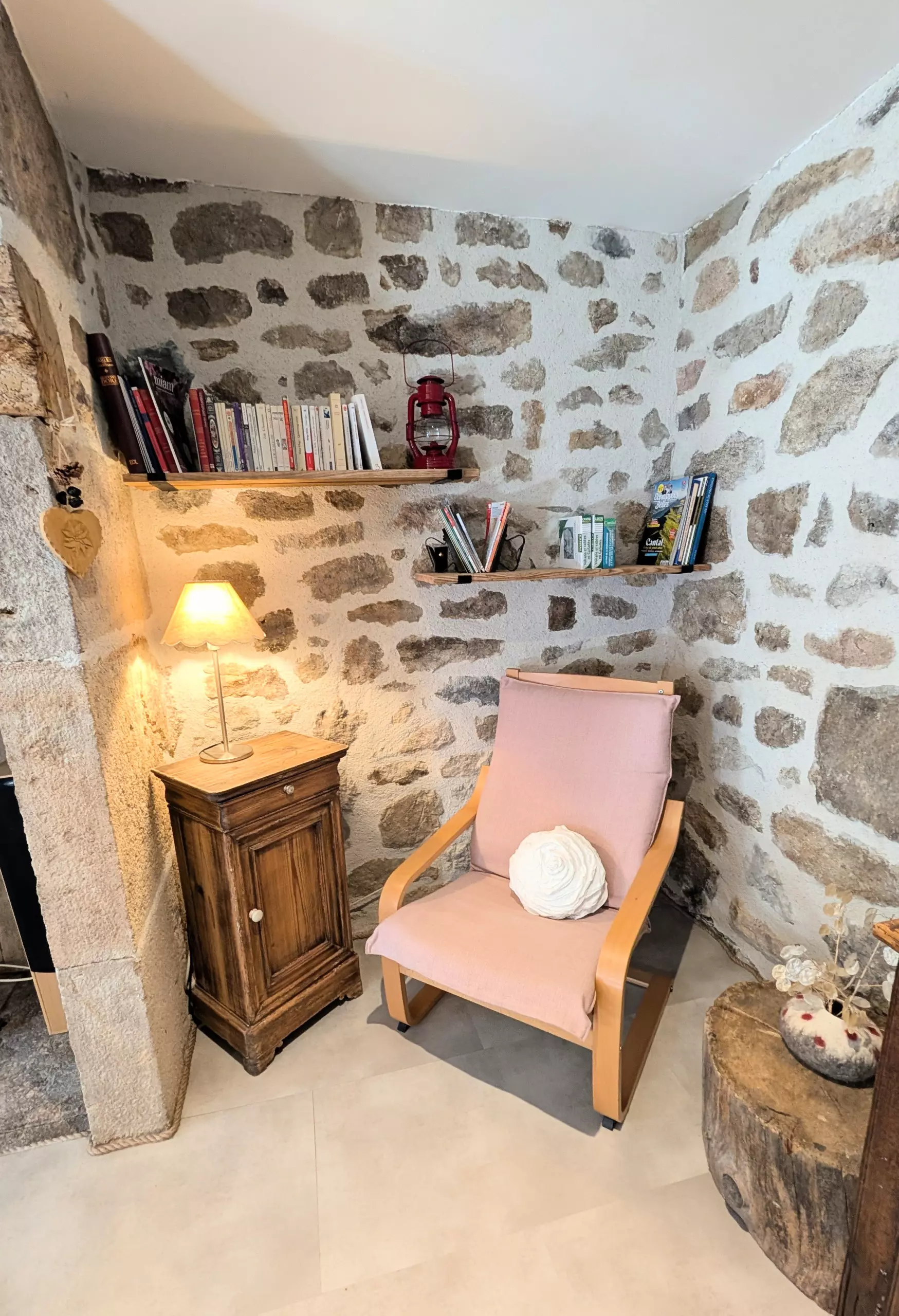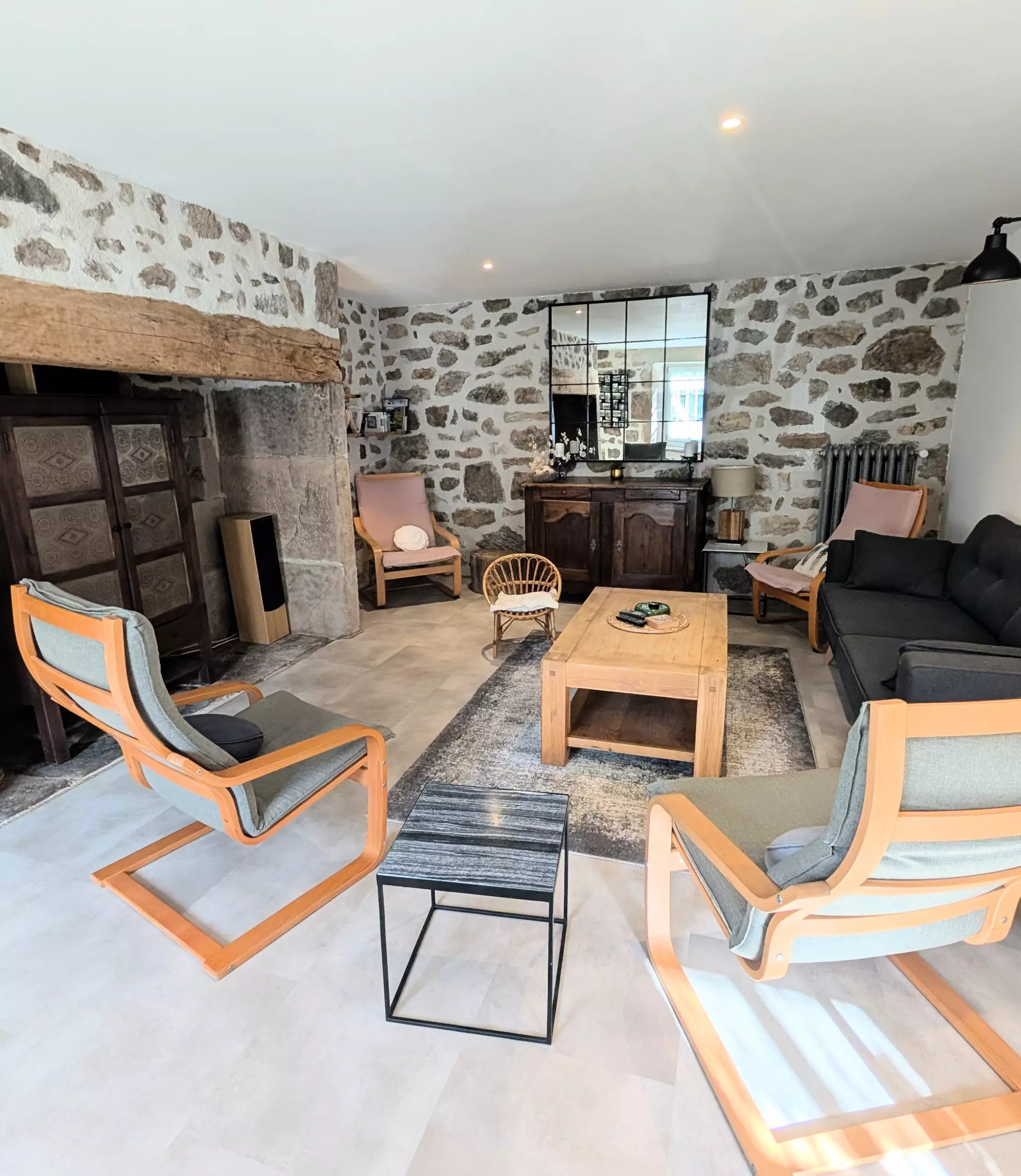 Cette maison de charme possède un espace salon avec télévision très conviviale, une cuisine équipée d'un four, micro-ondes, lave-vaisselle, grille pain, bouilloire, une cafetière à filtre, un appareil à raclette et à fondue (savoyarde et bourguignonne), ainsi que d'autres accessoires qui viennent compléter ces équipements, celle-ci est ouverte sur la salle à manger.