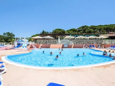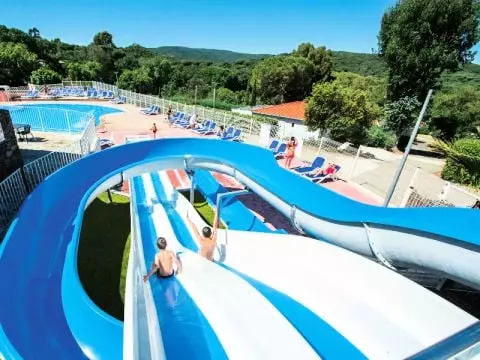 - Le camping met à votre disposition deux piscines extérieures dont une chauffée (suivant la température extérieure) avec pataugeoire, un bain à remous, un jardin aquatique pour les enfants, ainsi qu'un pentaglisse aquatique 3 pistes.