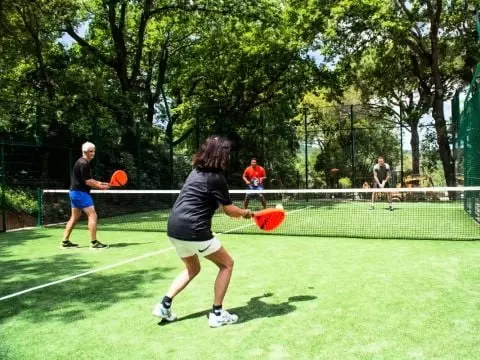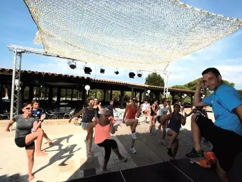 L'établissement propose une vaste gamme d'équipements de sports et de loisirs pour tous les âges. Les vacanciers peuvent profiter d'un espace fitness (avec salle de musculation/cardio et zone CrossFit), de terrains de tennis, d'un terrain de Padel, de terrains multisports (football, basket, badminton) et d'un mini-golf. En haute saison (Juillet/Août), l'équipe d'animation propose un programme d'animations sportives en journée (aquagym, tournois) et des soirées animées (spectacles, concerts, soirées thématiques) pour des moments de convivialité. Durant cette même période, les plus jeunes peuvent s'amuser au Club Enfants (4-11 ans) et au Club Ados (12-17 ans) qui proposent des activités encadrées dans des espaces dédiés.