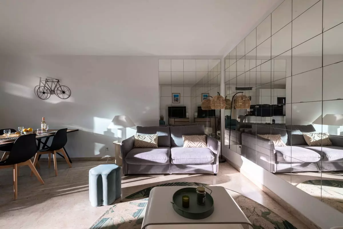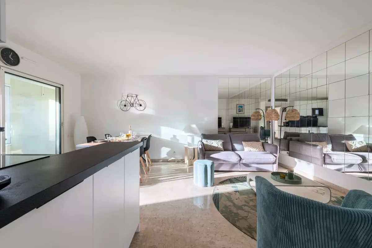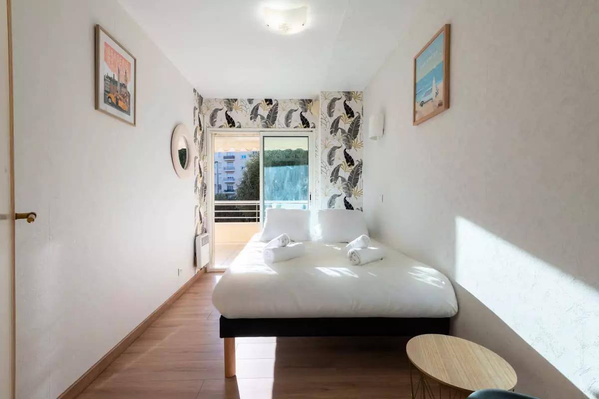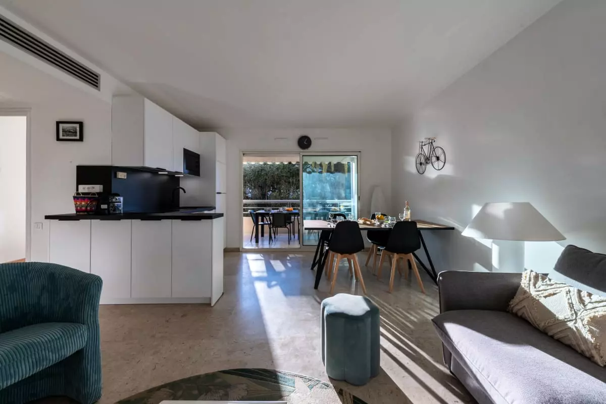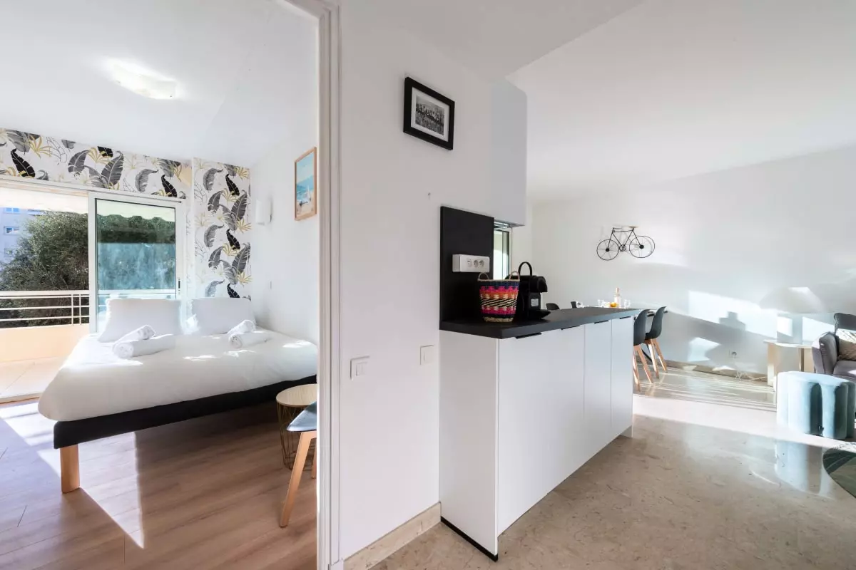 Un appartement fonctionnel et lumineux, à quelques pas de la Croisette et des plages, dans une résidence avec piscine. On y profite de la vie cannoise à pied : baignades, balades, shopping ou sorties en terrasse, tout est accessible sans voiture.