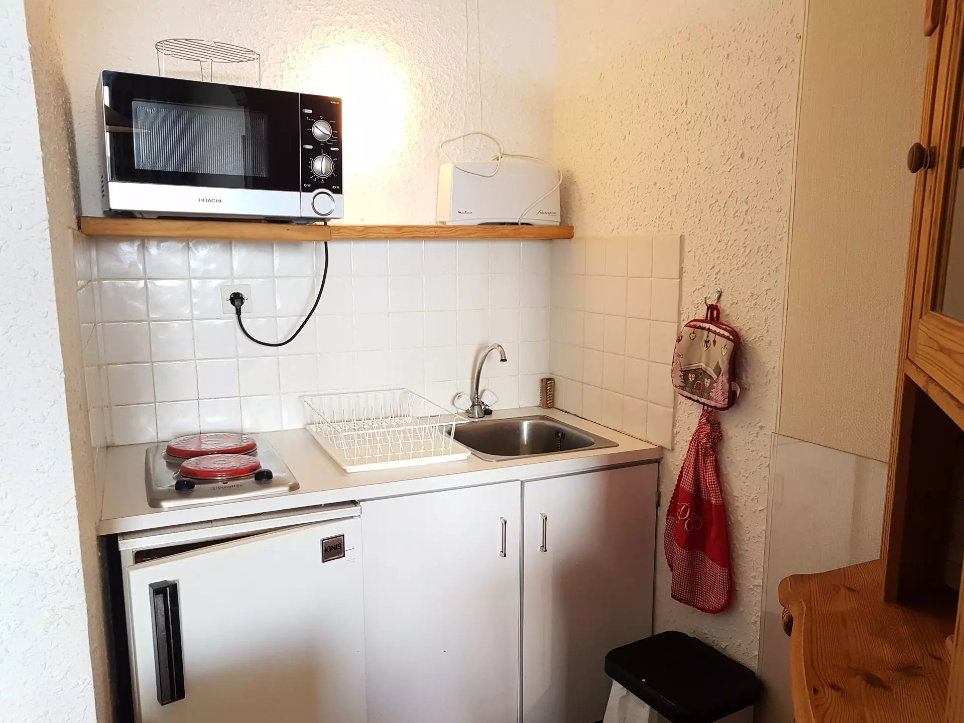 Équipements : Réfrigérateur, four micro ondes, plaques électriques. Télévision.