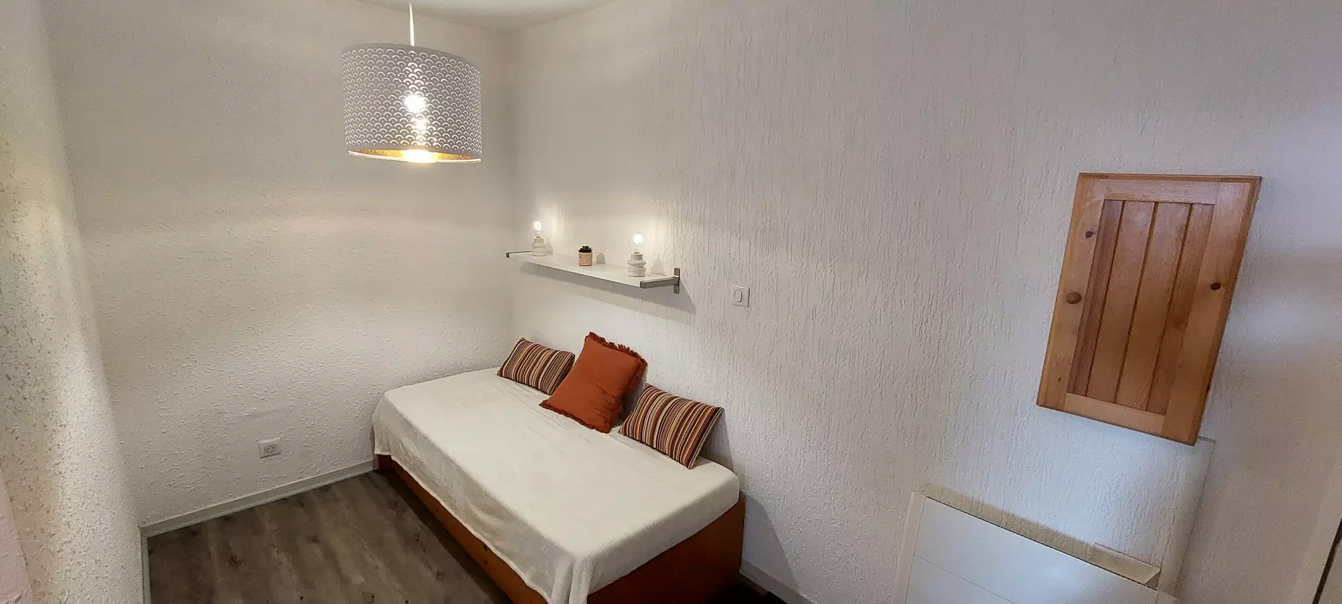 Couchages : 1 canapé convertible en 160cm, 1 ensemble de lits superposés (conseillé pour les enfants, uniquement à partir de 6 ans)
