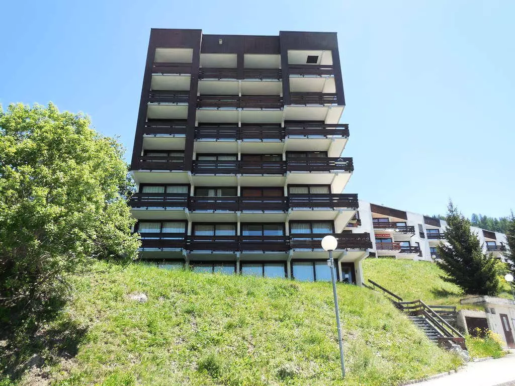 Résidence des années 70 avec des appartements situés proche des pistes et des commerces (magasins de sport, supérette).
