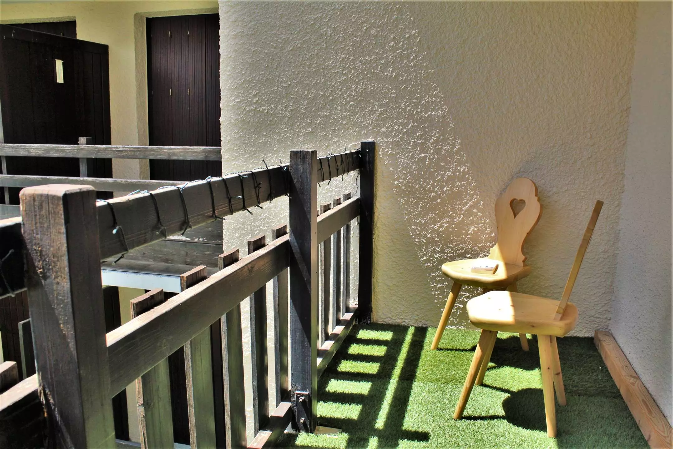 Le balcon est en exposition nord avec une belle vue dégagée sur les sommets.