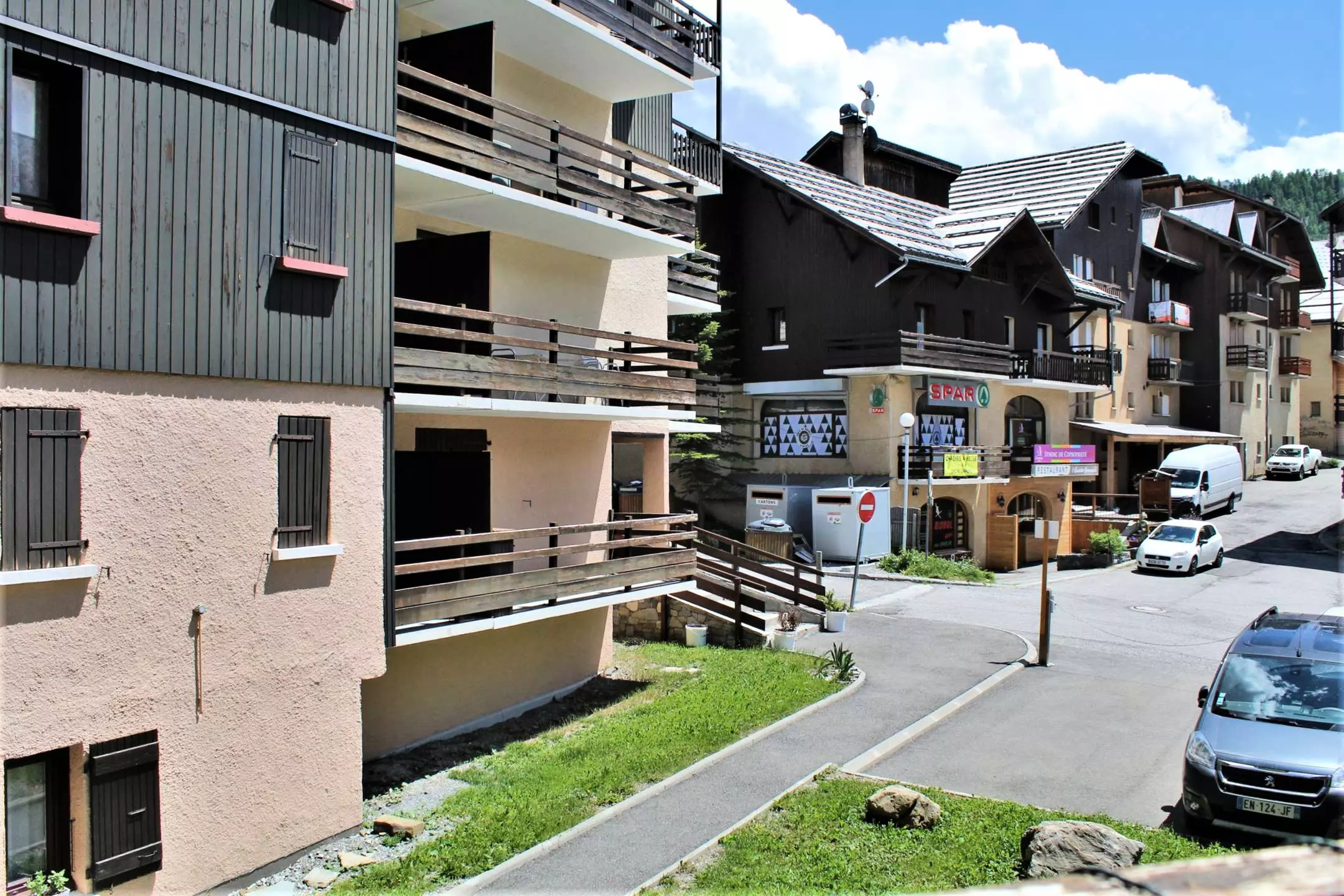 Situé en bas de la rue commerçante, à proximité des commerces, des départs des navettes et à 100 m des pistes.
