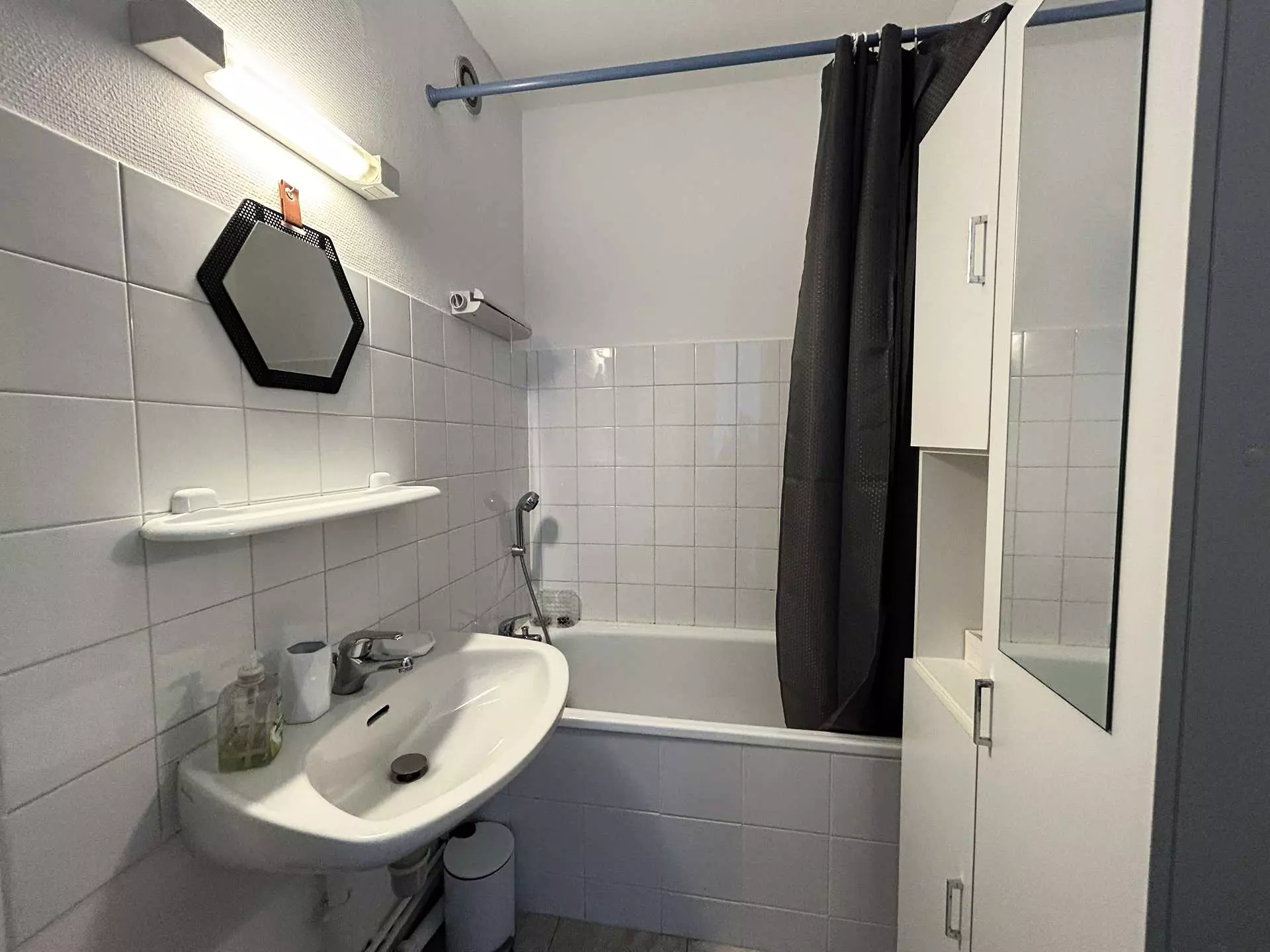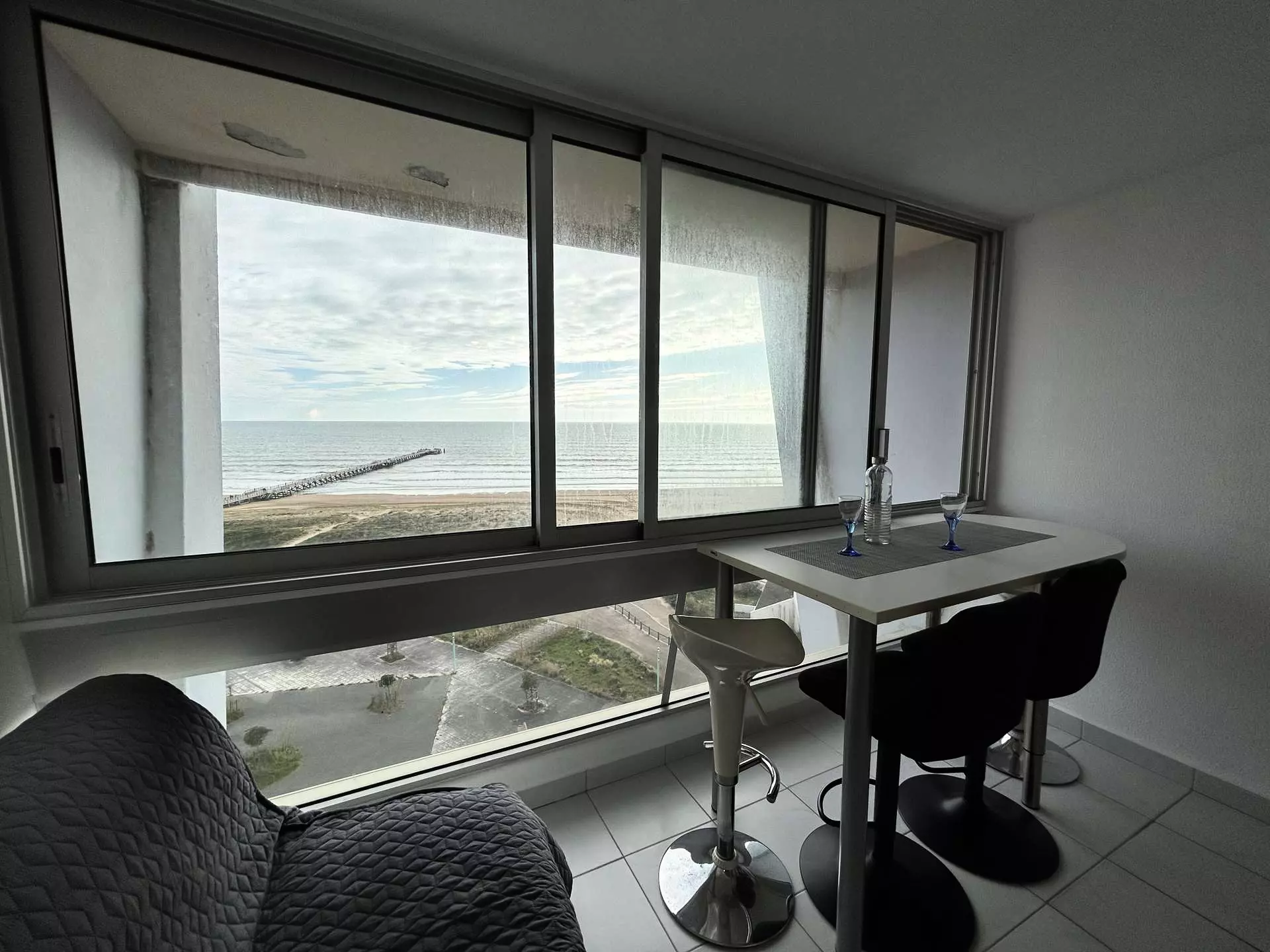Cet appartement de vacances, situé au 9eme étage, vous séduira par son confort et sa praticité. Il dispose d'un séjour lumineux équipé d'un canapé convertible deux places, d'une télévision et d'un coin cuisine fonctionnel comprenant micro-ondes, mini-four, cafetière, bouilloire, grille-pain et réfrigérateur. Vous y trouverez également une salle de bains et des toilettes indépendantes.